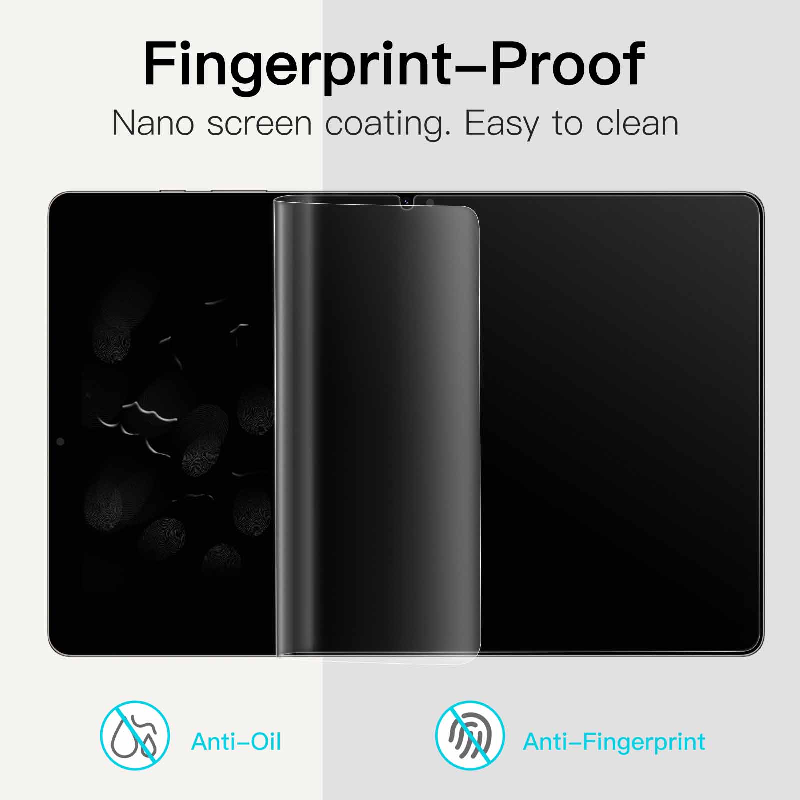 [Anti-Fingerprint] The hydrophobic and oleophobic coating effectively prevents the residue of fingerprints, oil and watermark from gathering on the screen