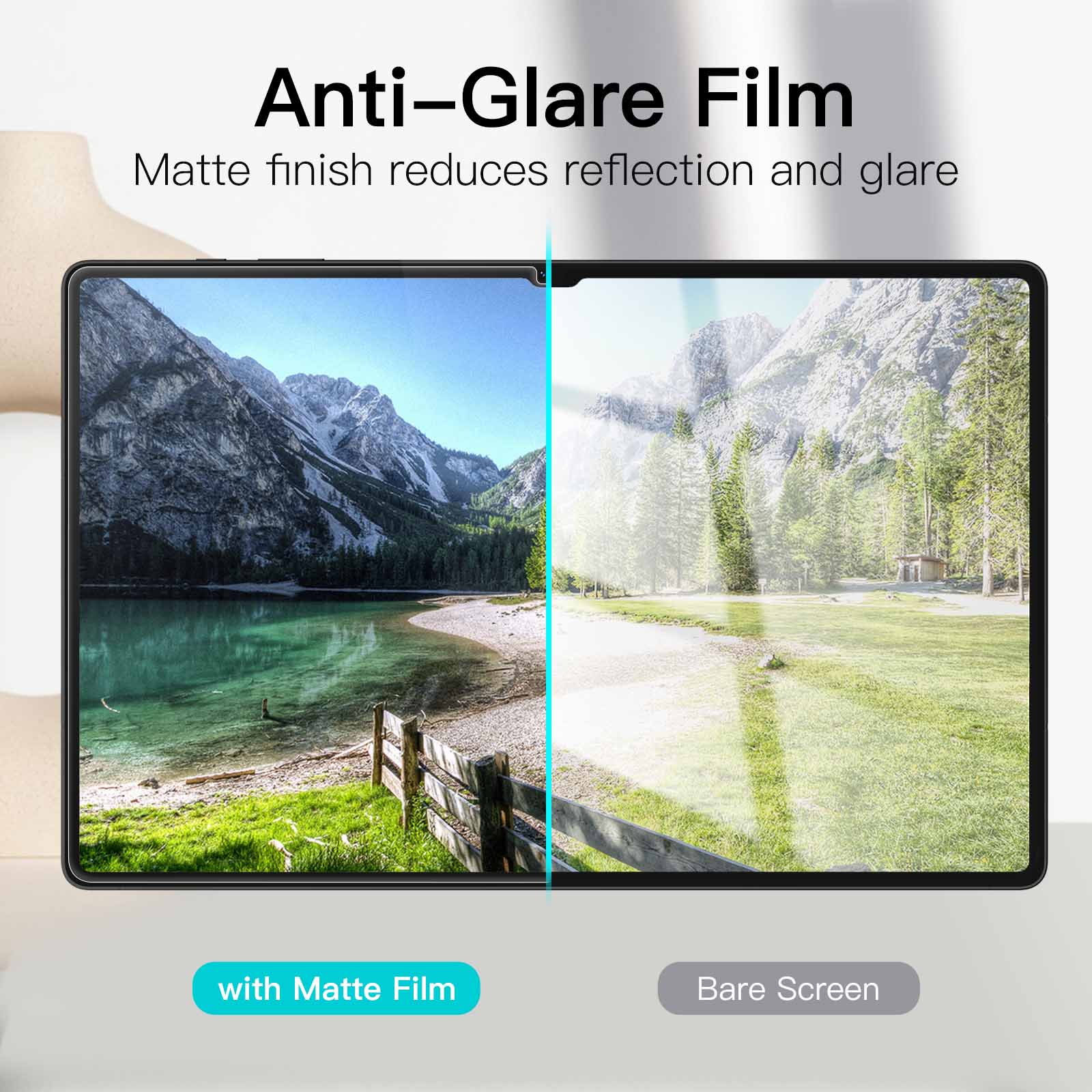[Anti-Glare] Ultra-thin matte film effectively blocks glare, reduces eyestrain and reflection from screen. Ensures comfortable viewing experience even under the bright light