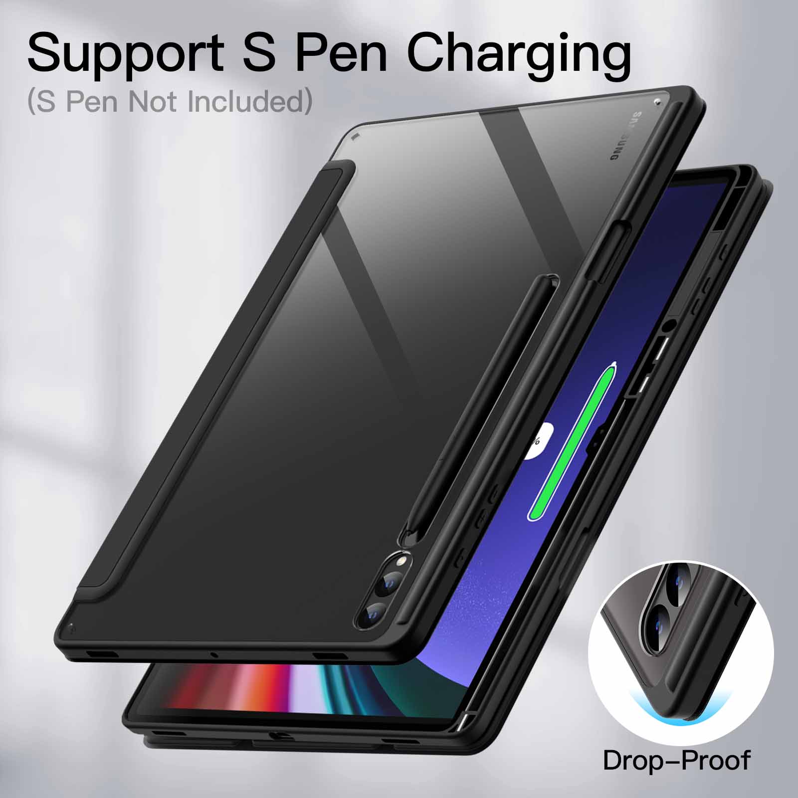 [Designs for S Pen] You can pair and charge your S Pen magnetically through the back slot. Also there is a built-in pen holder for securely store and grab your S Pen easily (Note: S Pen Not Included)