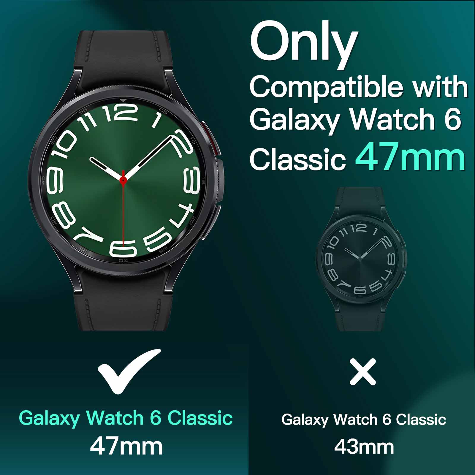 [Compatibility] Only fit for Samsung Galaxy Watch 6 Classic 47mm 2023 released. Fit model number SM-R960NZKACHC. Please double check the number and size of your watch on its back before purchasing
