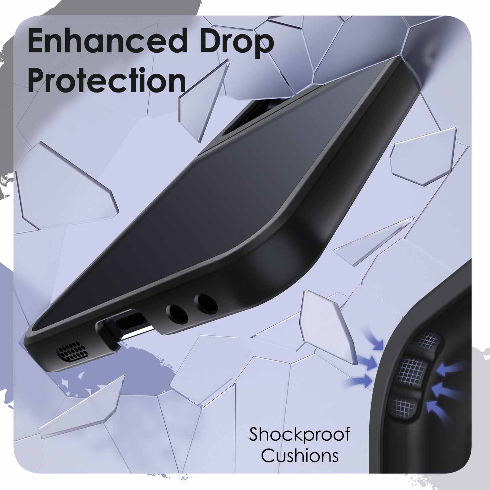 [Shock-Absorption] Two metal hinges stably connect the TPU upper part to the main PC lower part into a hybrid case with the four-corner cushions design. Effectively protect your phone against shocks caused by accidental drops