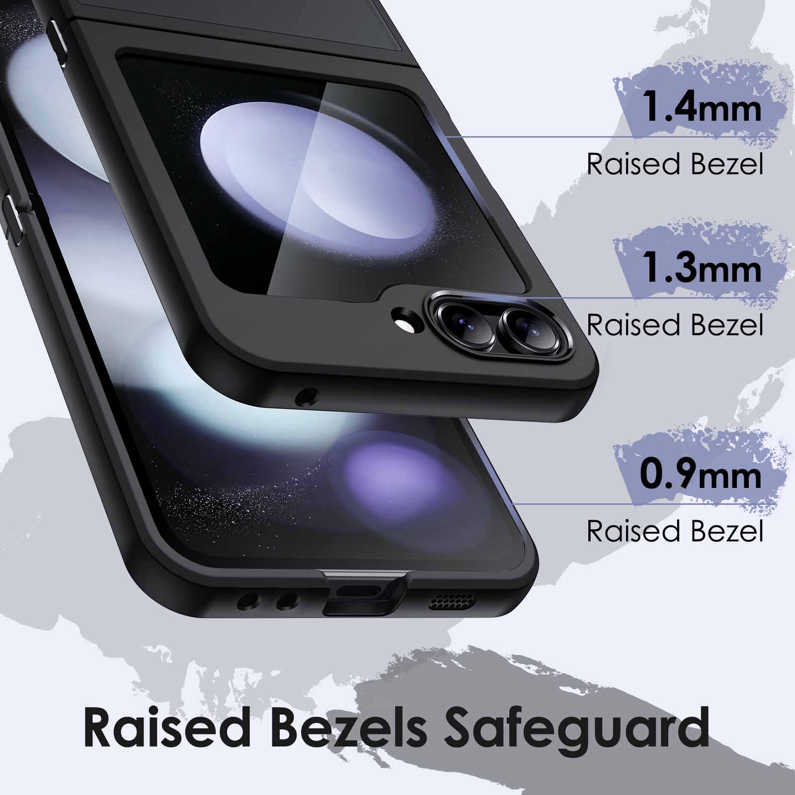 [Raised Lips Protection] There are raised bezels around the camera, front screen as well as main screen. No worry about scratches when your phone gets in touch with the surfaces