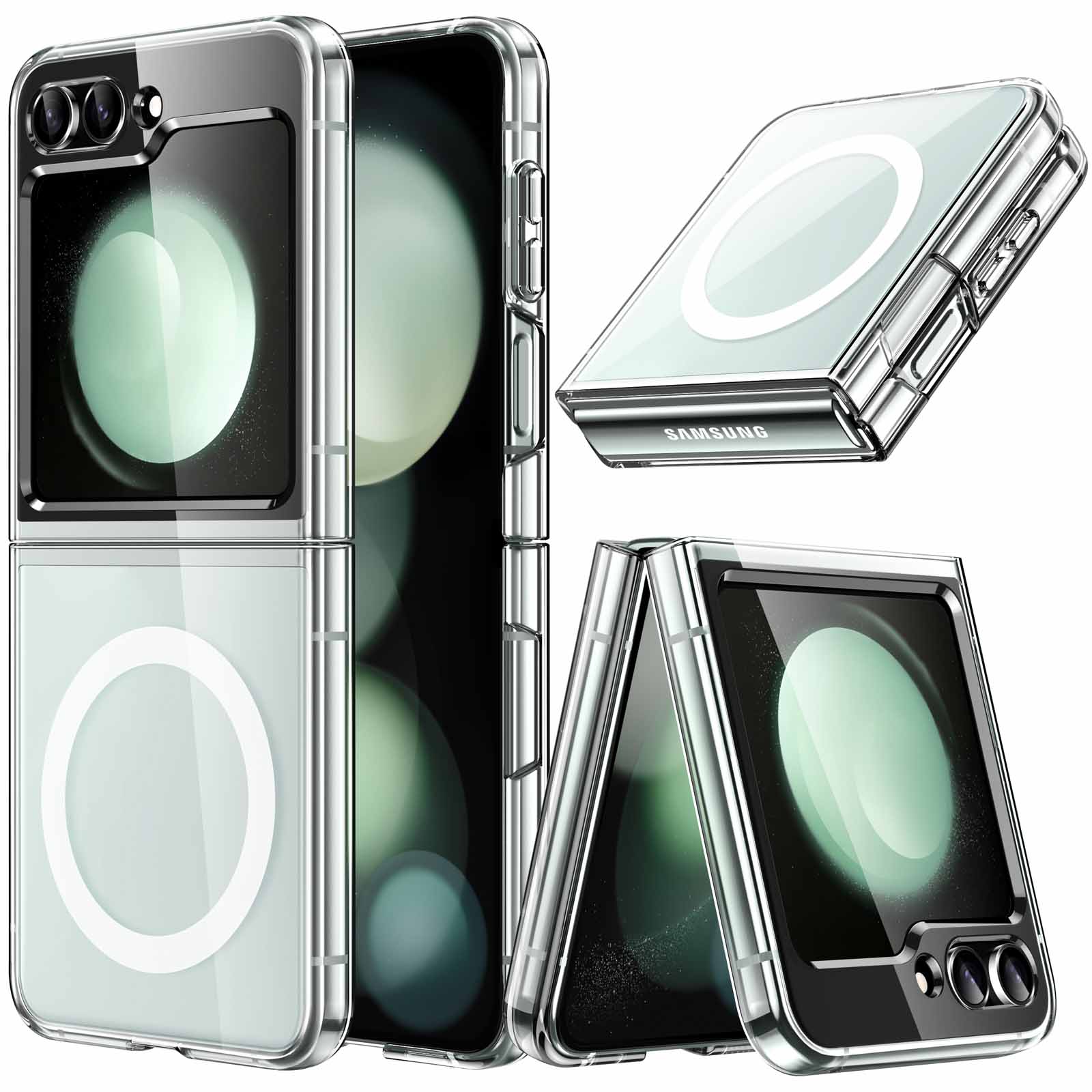 JETech Magnetic Case for Samsung Galaxy Z Flip 5 Compatible with MagSafe Accessories, Transparent Hard PC Protective Phone Cover, Anti-Scratch