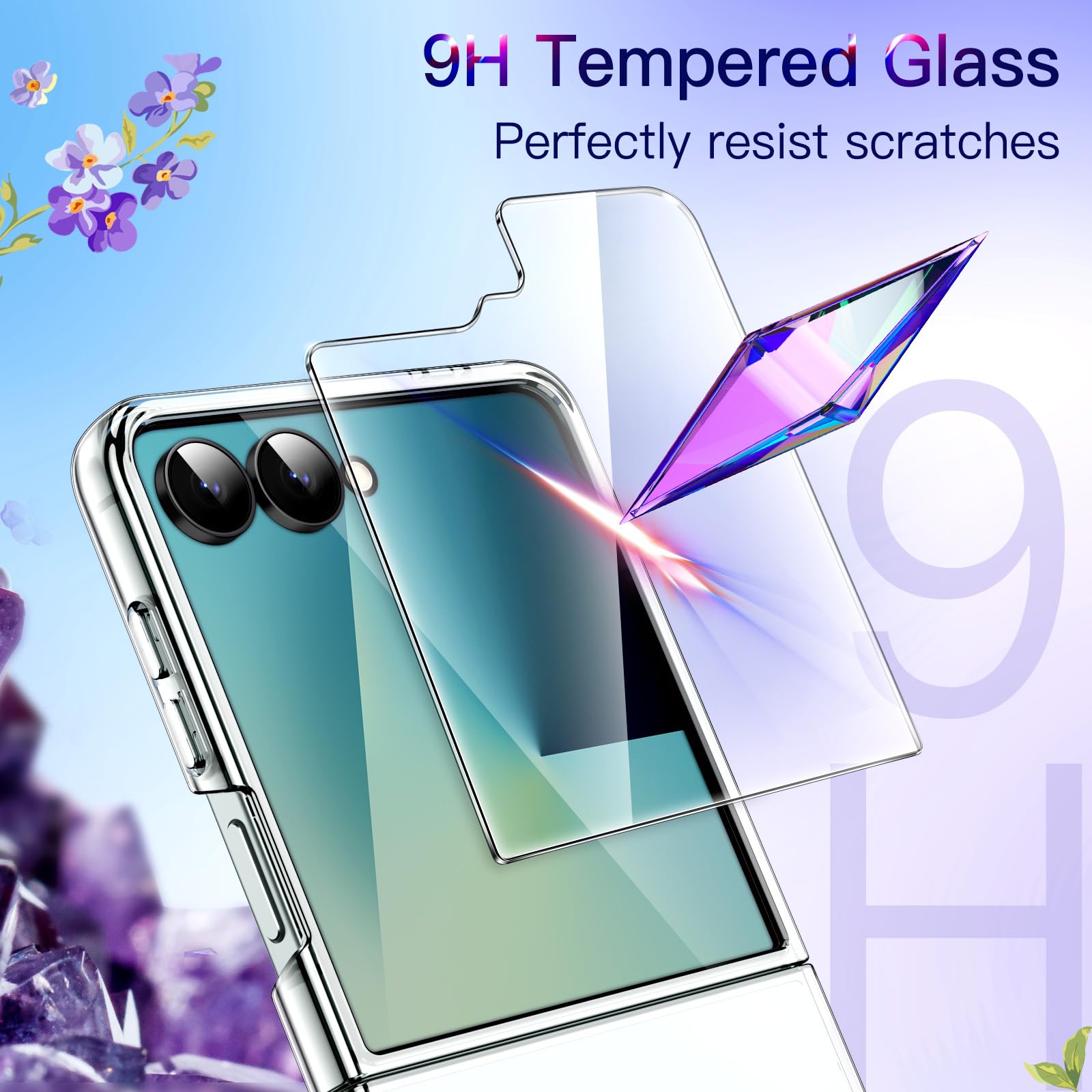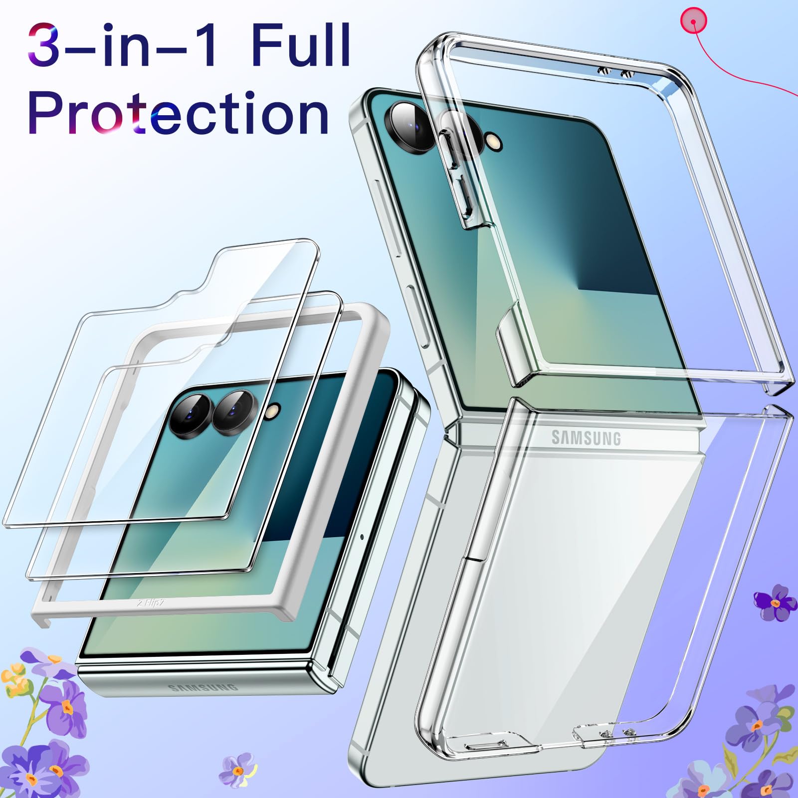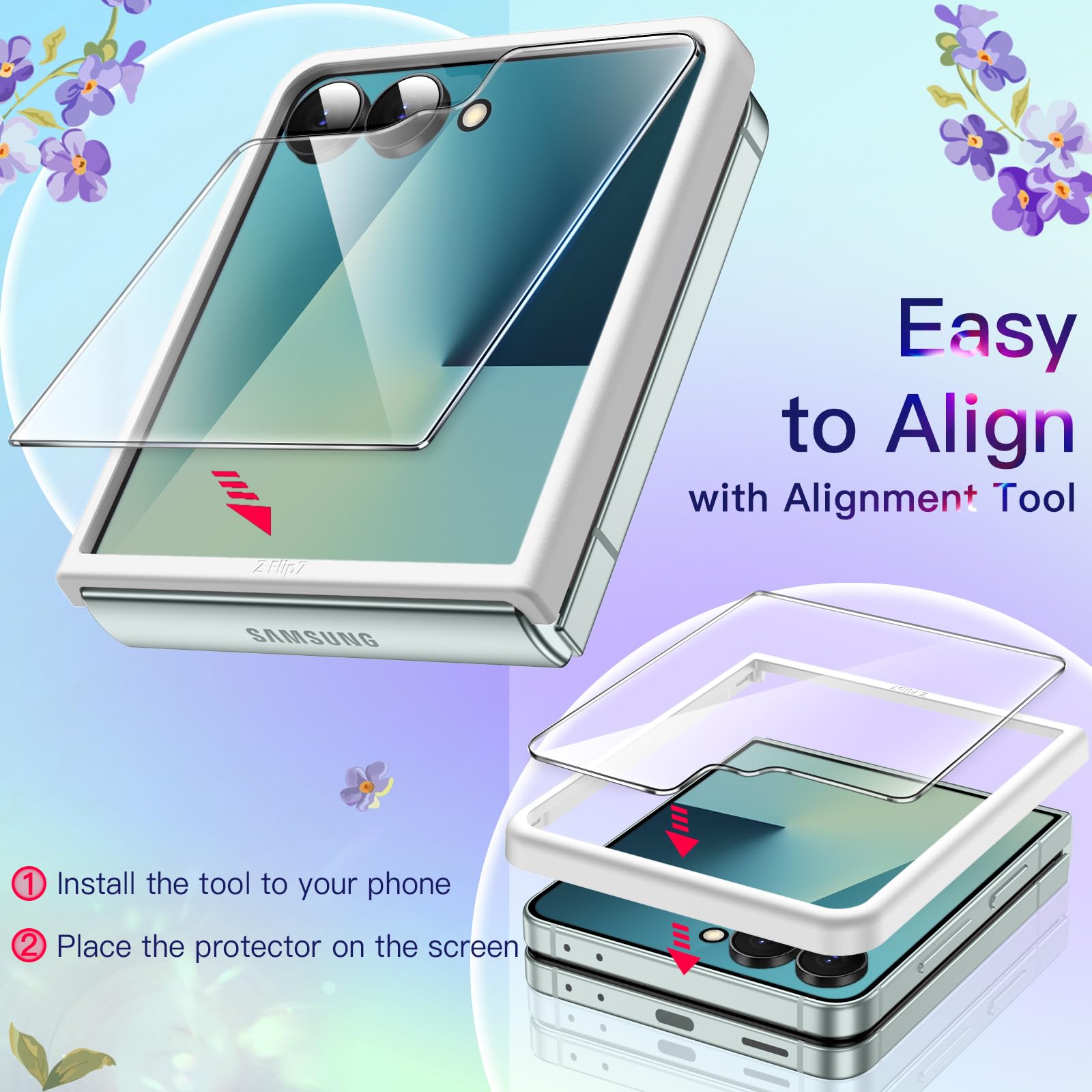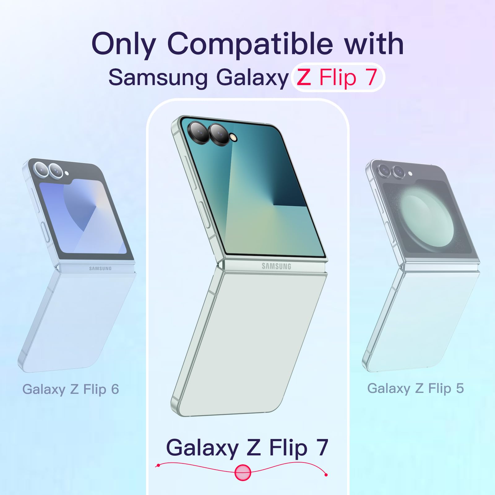 • [Complete 3 in 1 Protection] Only compatible with Samsung Galaxy Z Flip 7 2025. NOTE: Not for Samsung Galaxy Z Flip 6 / Flip 5. Comes with a hard crystal-clear case and two high-quality 9H tempered glass front screen protectors with an alignment tool for bubble-free and easy installation
