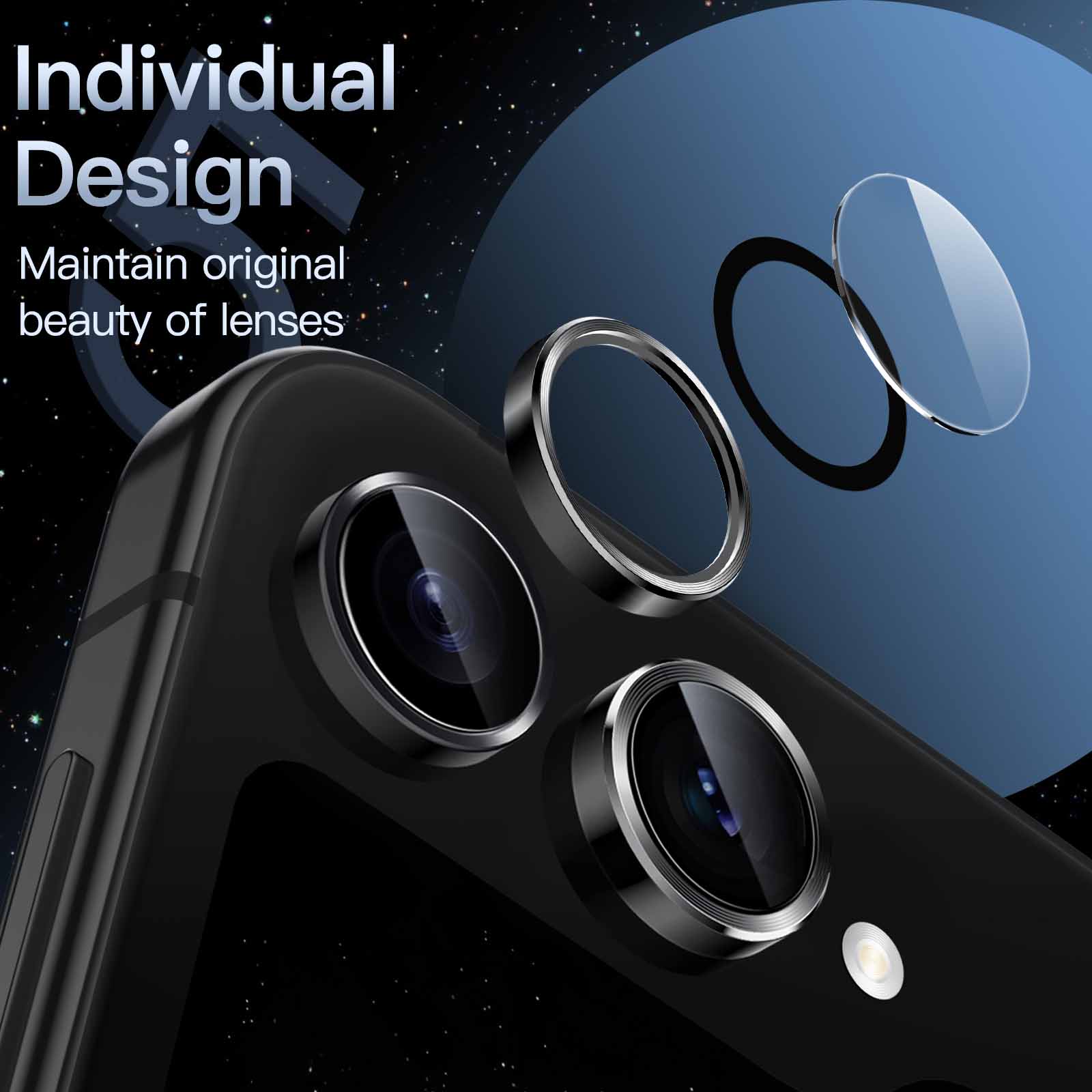 JETech Camera Lens Protector for Samsung Galaxy Z Flip 5, 9H Tempered Glass Metal Individual Ring Cover, HD Clear, 2-Pack