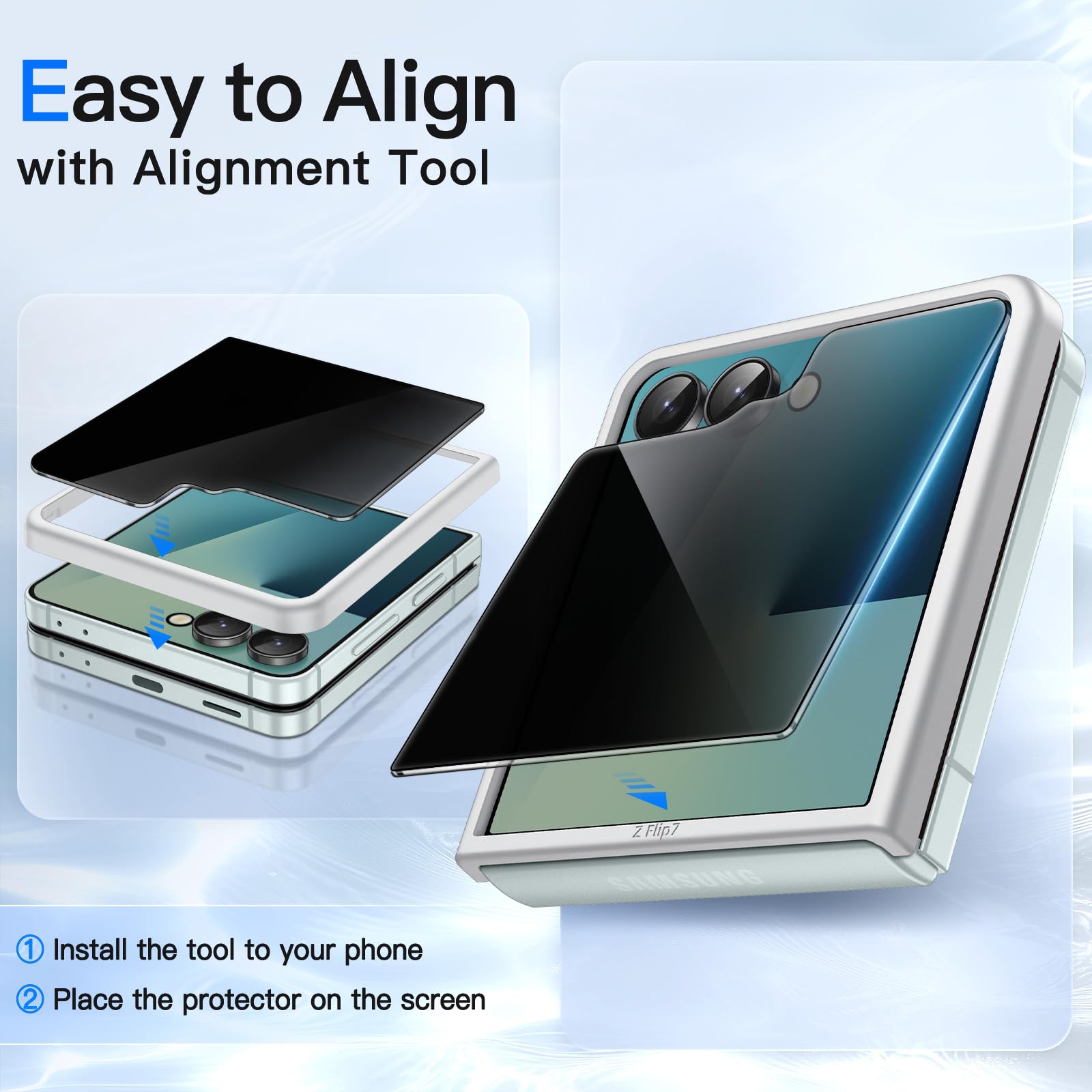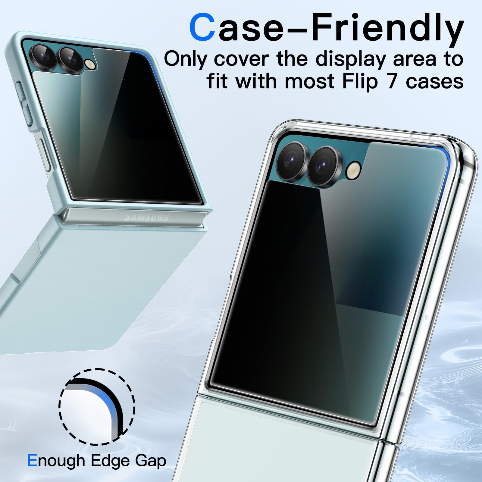 [Compatibility] Designed for Samsung Galaxy Z Flip 7 2025 for great protection. NOTE: Not for Samsung Galaxy Z Flip 6 / Flip 5. The protector does not cover the entire screen to enhance compatibility with most phone cases