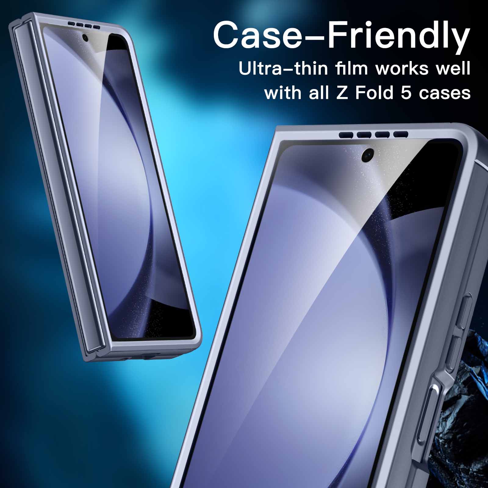 [Case-Friendly Design] Only compatible with Samsung Galaxy Z Fold 5. The film is ultra-thin, working well with all phone cases for this phone model