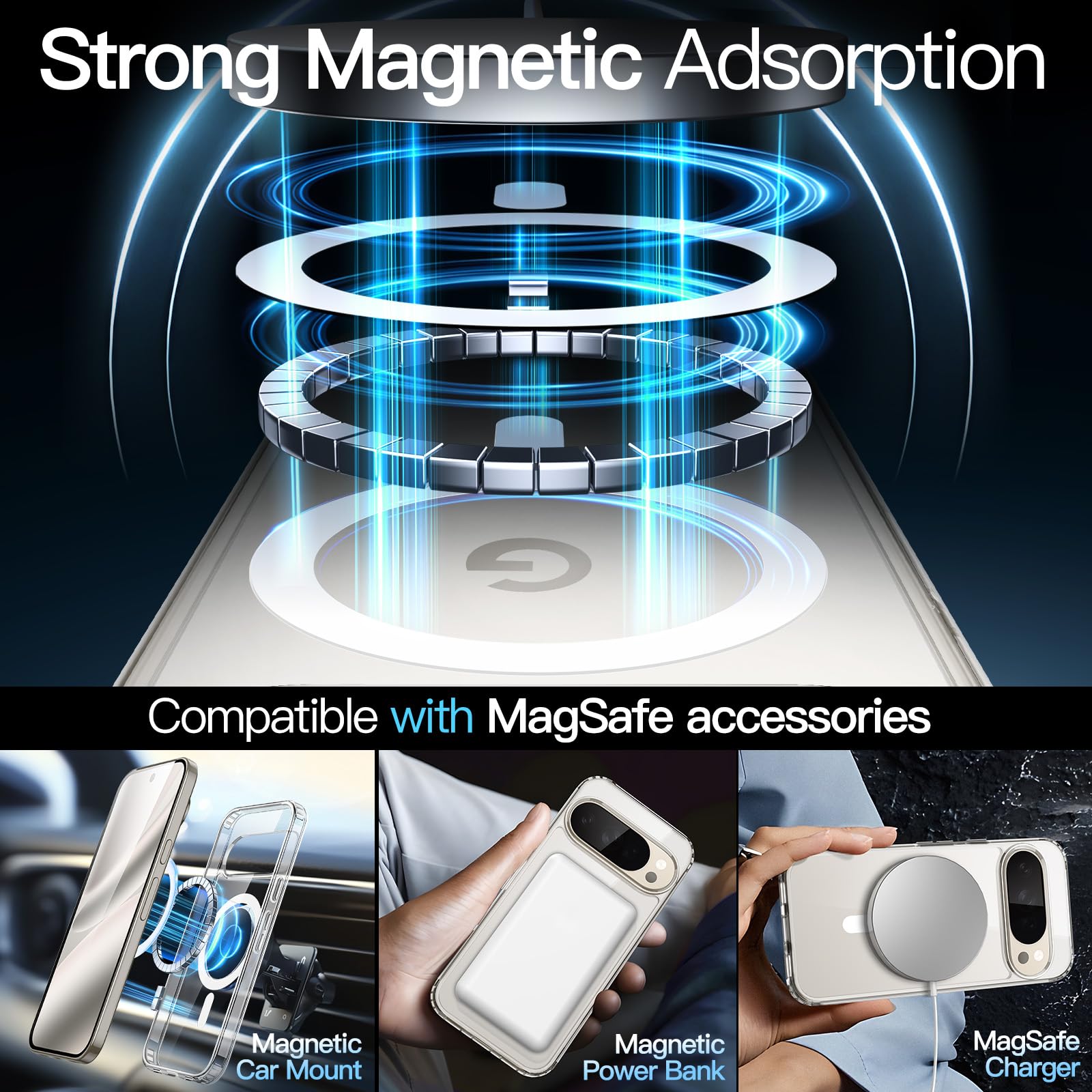 [Compatibility] Exclusively designed for Google Pixel 10 Pro XL 2025. NOTE: Not for Google Pixel 10 / 10 Pro / Pixel 9 series. With built-in 38 pieces of magnets, the clear case is compatible with MagSafe accessories and Pixelsnap Charger