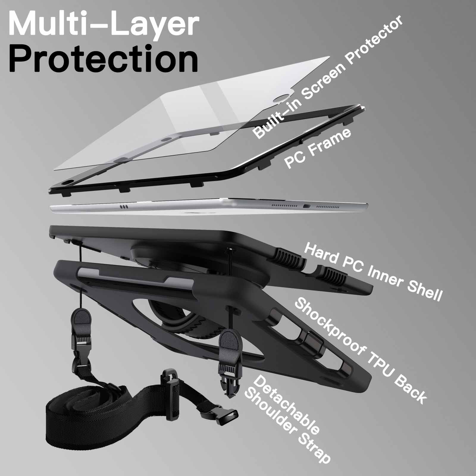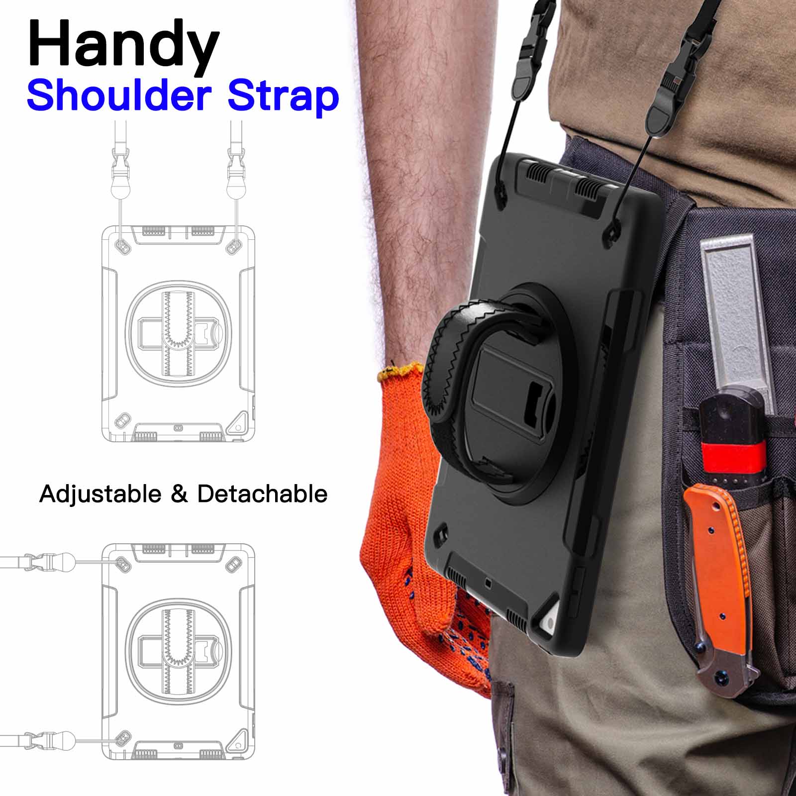 [Detachable & Adjustable Shoulder Strap] Carry your iPad conveniently wherever you are at home, at work, or on a trip. You can also hang it behind the headrest of the car seat for shared viewing