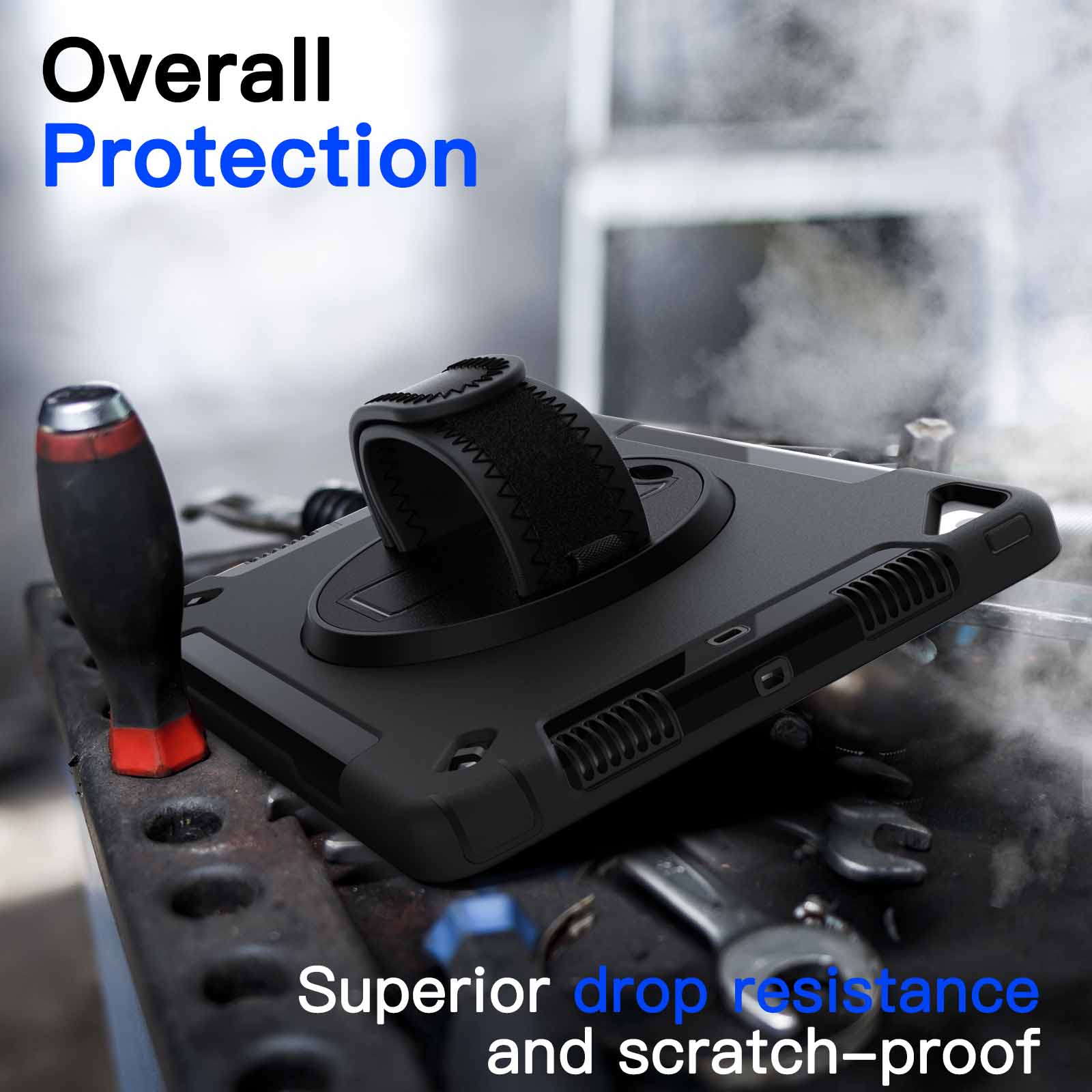 [360?? Rotating Kickstand & Hand Strap] Easily support your iPad in multiple angles. Moreover, the soft hand strap allows you to hold your iPad firmly and comfortably to prevent accidental drops. And your kids can use iPad easily and safely to study or watch movies