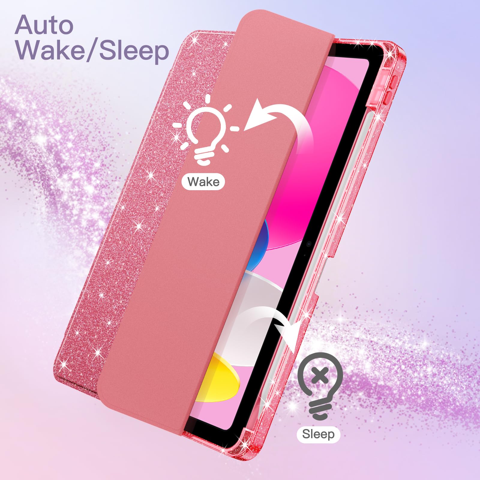 JETech Glitter Case for iPad (A16) 11th/10th Generation (2025/2022) with Pencil Holder, Cute Sparkly Slim Cover for Kids and Girls, Shiny Clear Back Shell