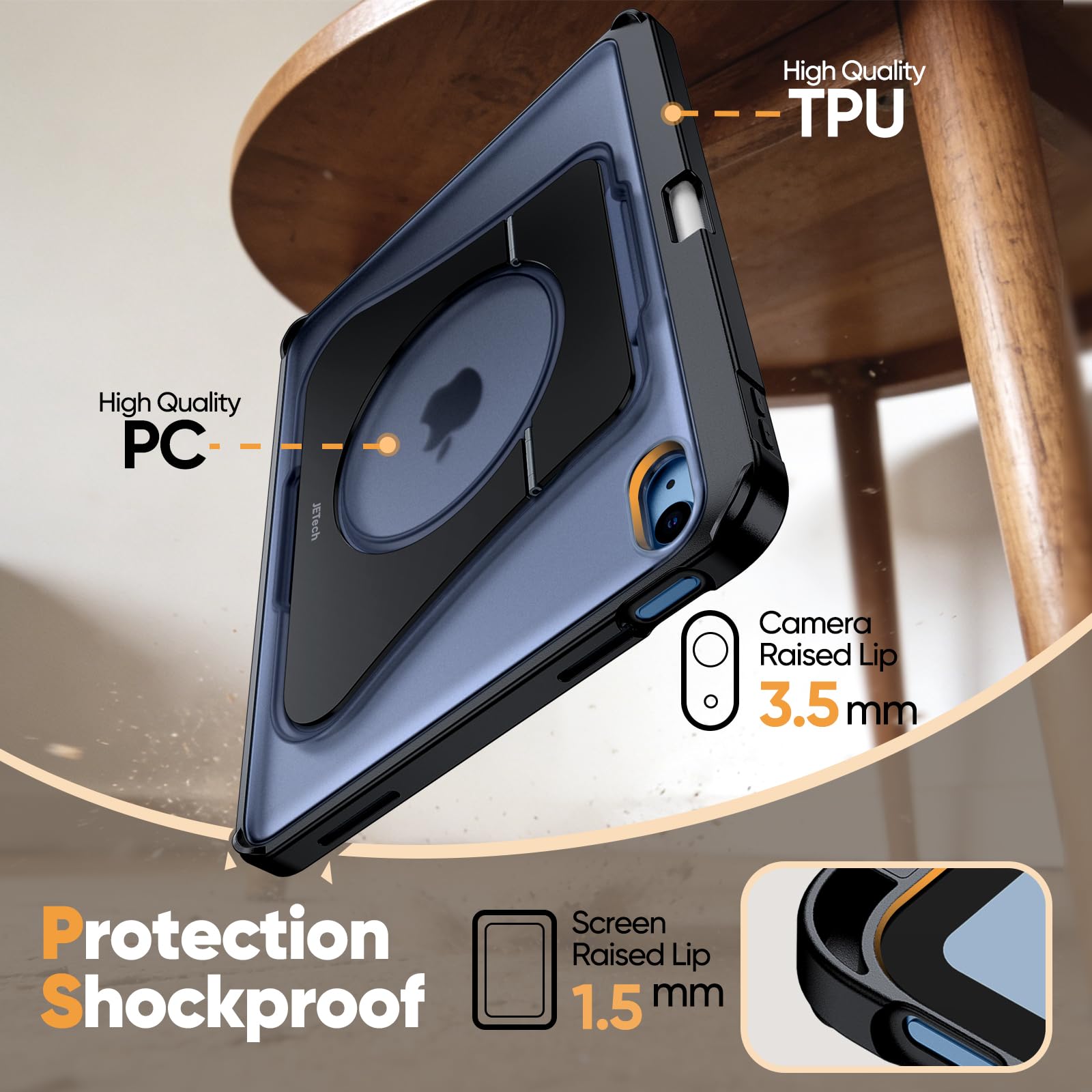 JETech Kickstand Case for iPad (A16) 11th/10th Generation (2025/2022) with Pencil Holder, Slim Shockproof Cover, Frosted Translucent Back, Sturdy Adjustable Multi-Angle Stand