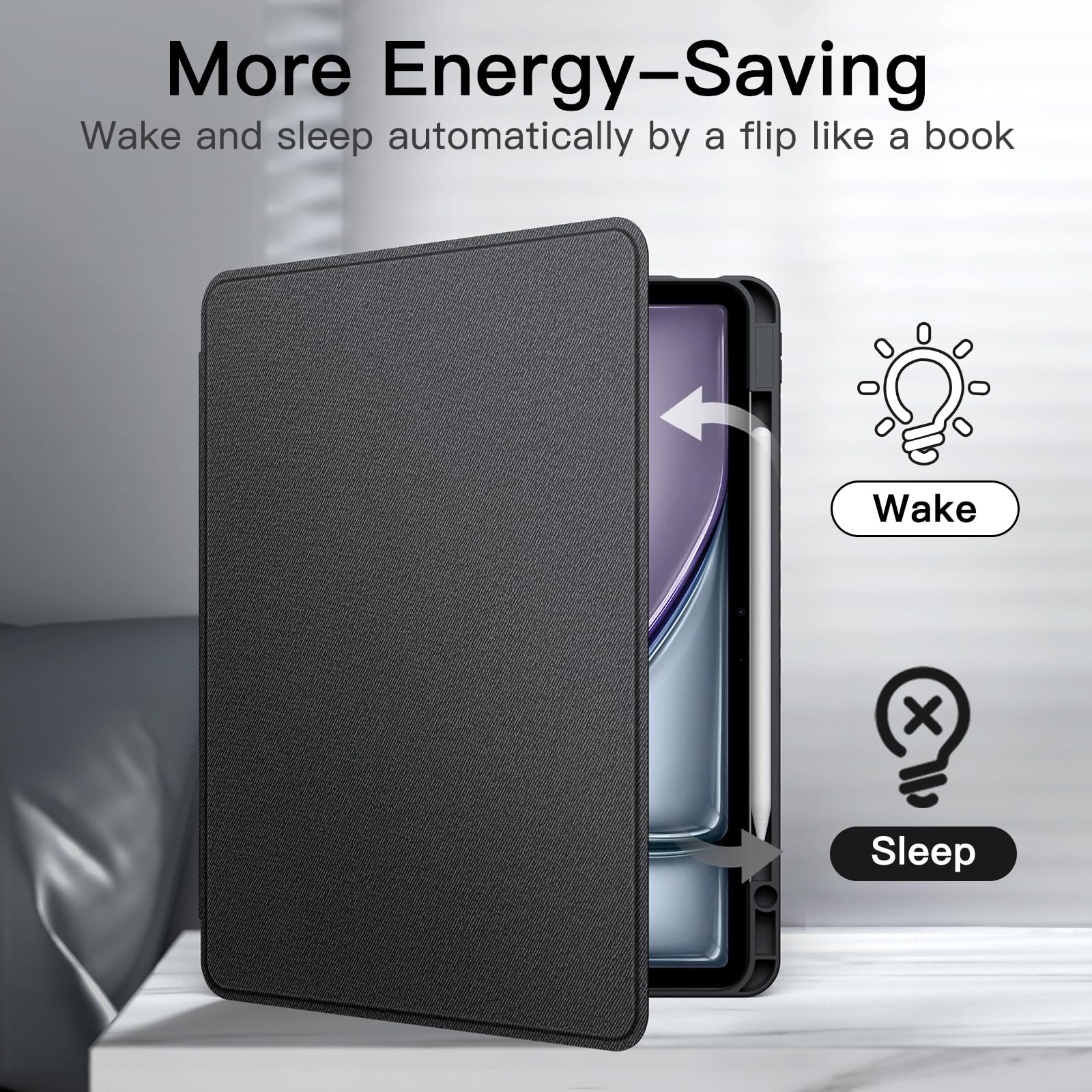 [Auto-Wake/Sleep] Built-in strong magnet automatically wakes up your tablet and puts it to sleep just by a flip like a book. In addition, allow easy open and secure close