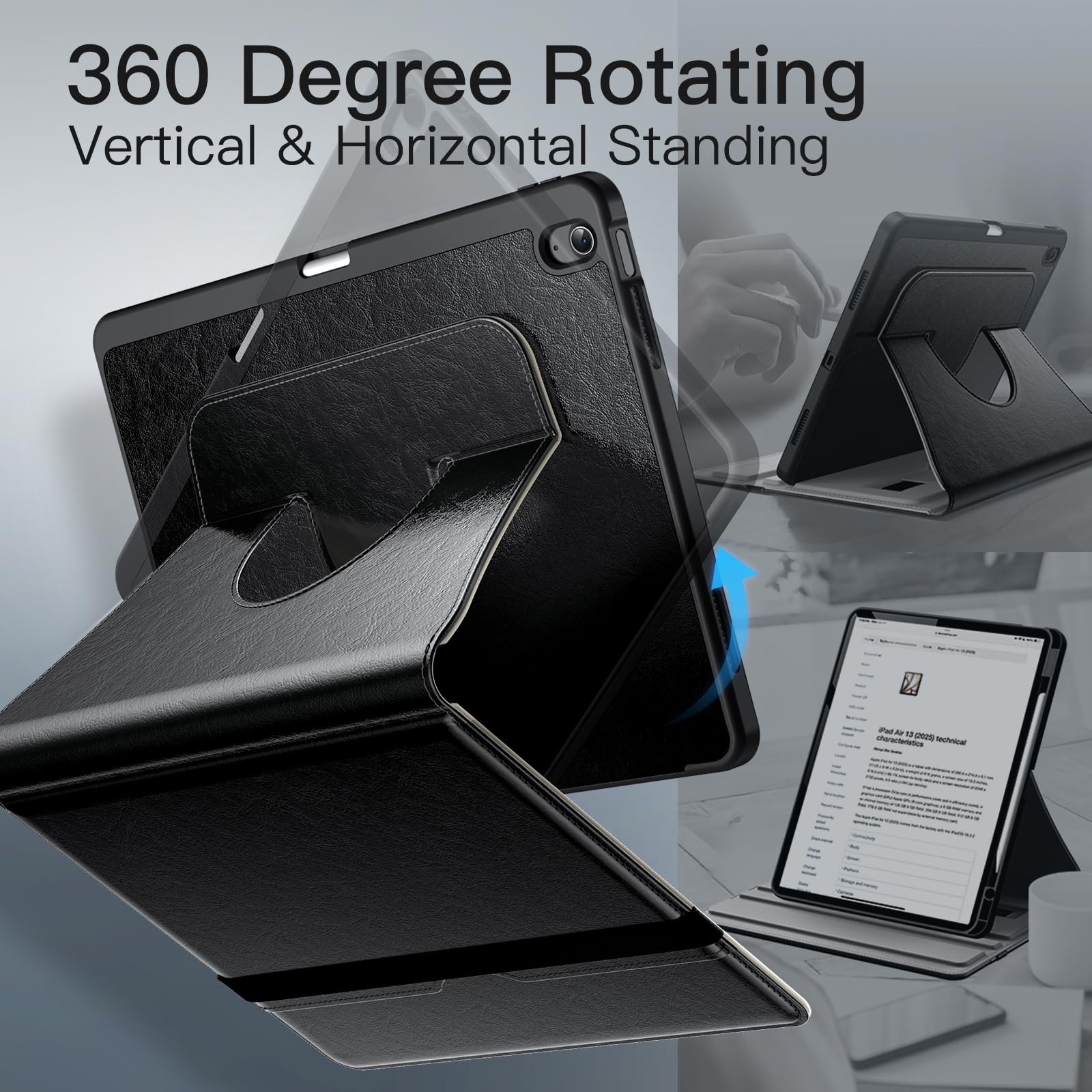 • [360 Degree Rotating] The case coming with a 360 degree swivel design, stably supports your iPad whether in a portrait or landscape stand mode in various angles with two anti-slip deep grooves. Functional and convenient