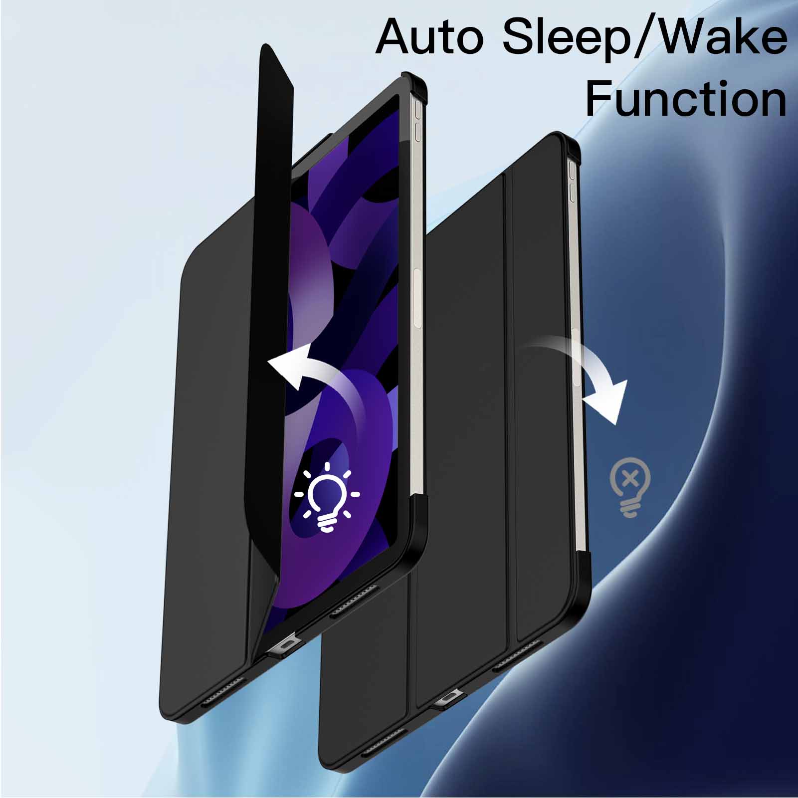 • [Auto-Wake/Sleep] Magnetic smart cover supports automatic sleep/wake function. Precise cutouts for easy access to all functions and features