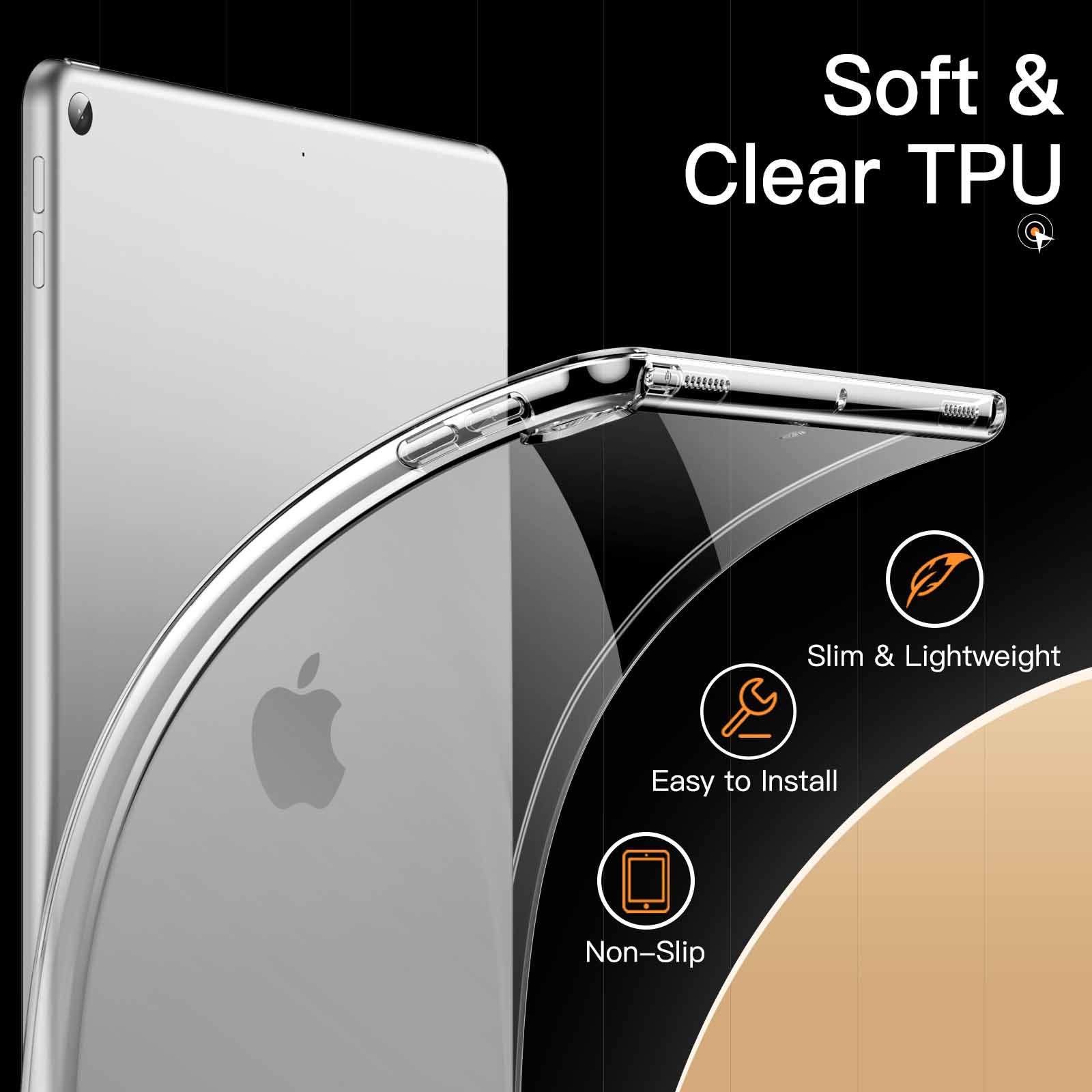 [Shock-Absorbing TPU] The flexible TPU makes it easy to install and take off the case without leaving scratches on your device, and durable enough to protect iPad from accidental drops