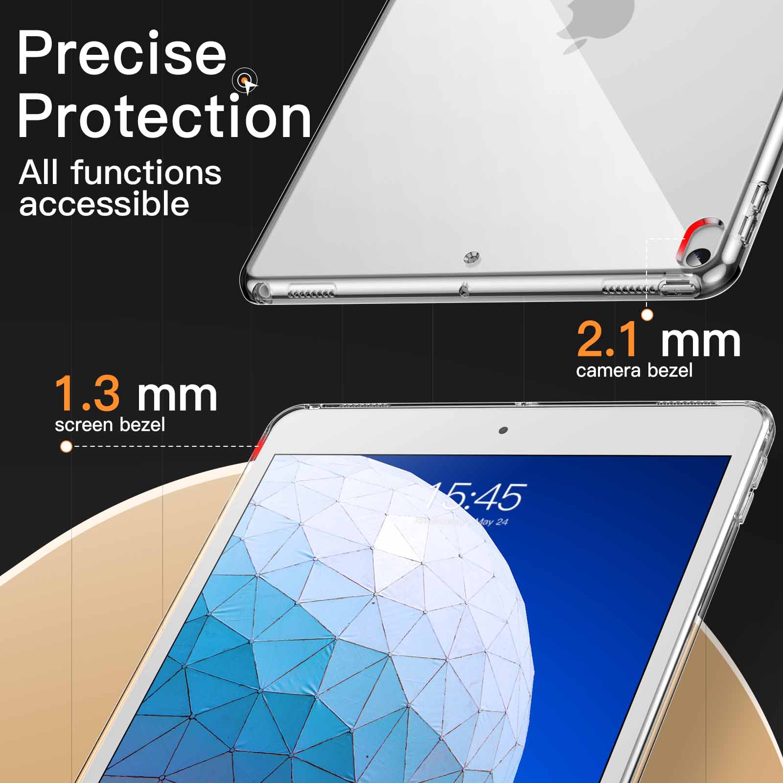 JETech Case for iPad Pro 10.5-Inch and iPad Air 3 (10.5-Inch 2019, 3rd Generation), Soft TPU Transparent Slim Shockproof Tablet Cover – Clear