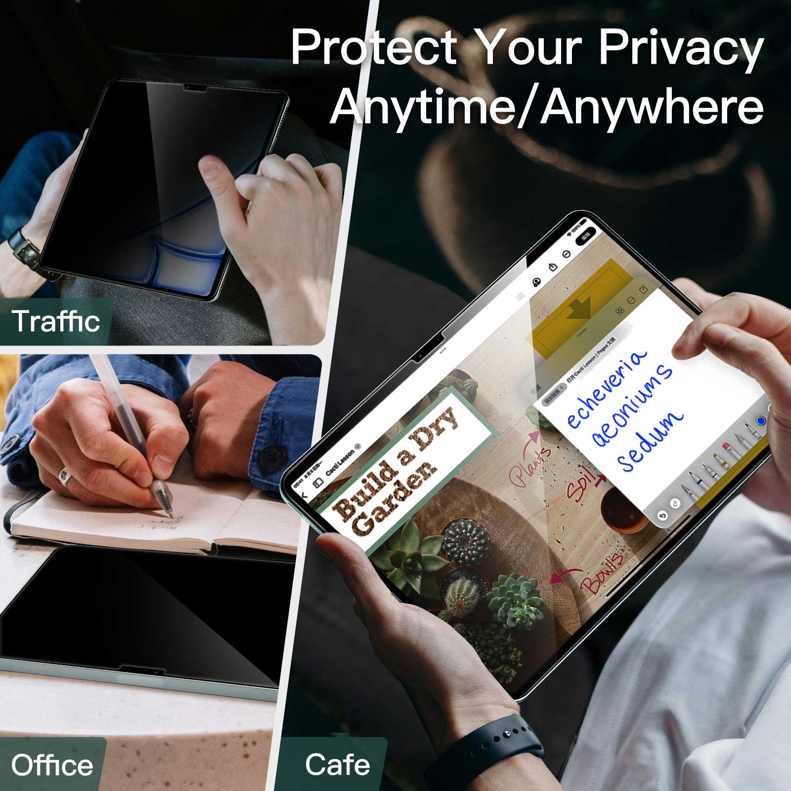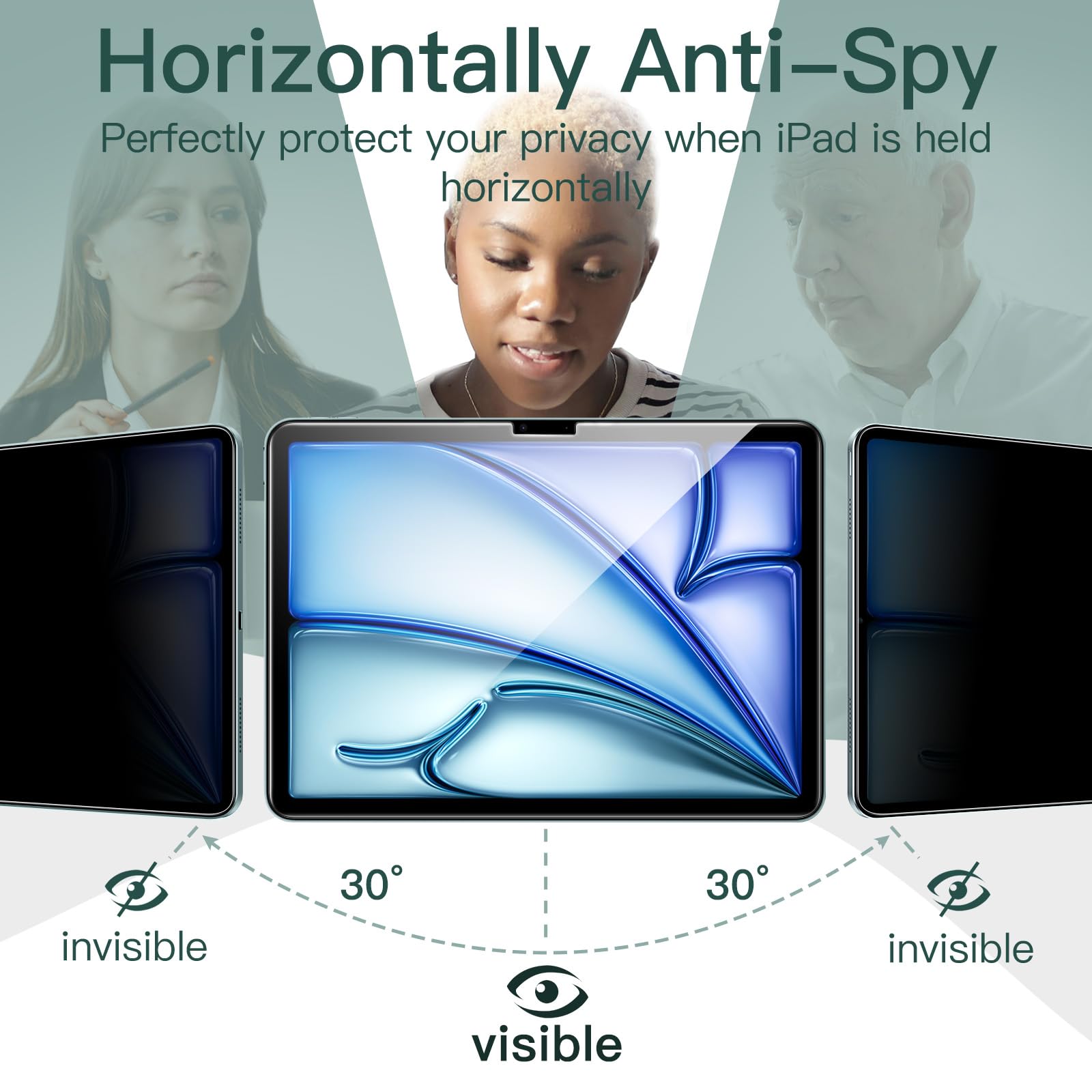 [Privacy Protection] When the iPad is held horizontally, the screen is only visible to persons directly in front of screen, protecting your privacy from peeping by strangers. (Note that the protector will darken the screen a little for a better anti-spy effect. And you can turn up the display brightness for better viewing experience)