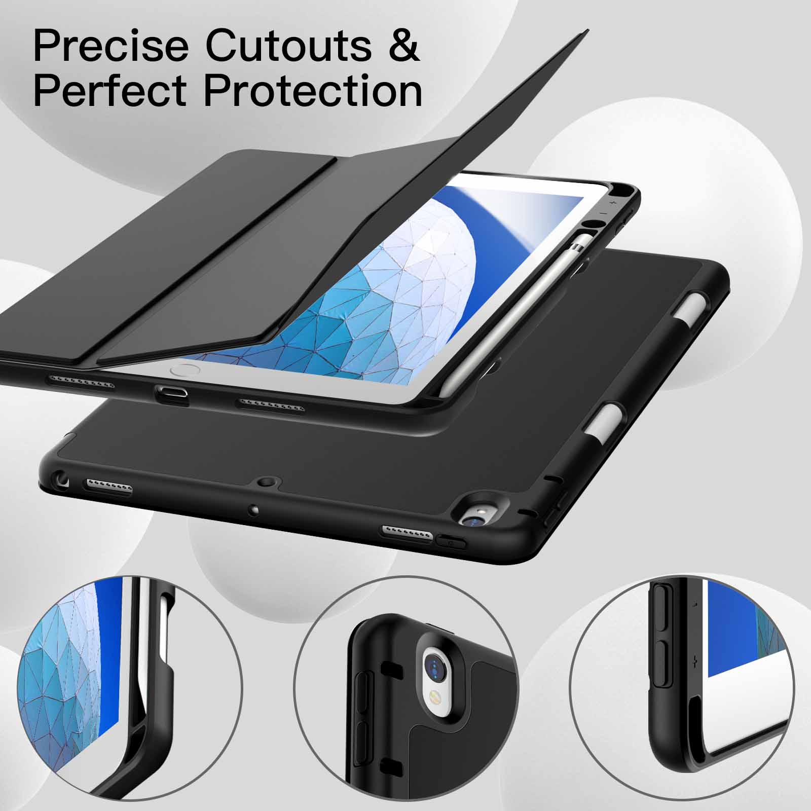 • [Auto-Wake/Sleep] Magnetic smart cover supports automatic sleep/wake function. Precise cutouts for easy access to all features