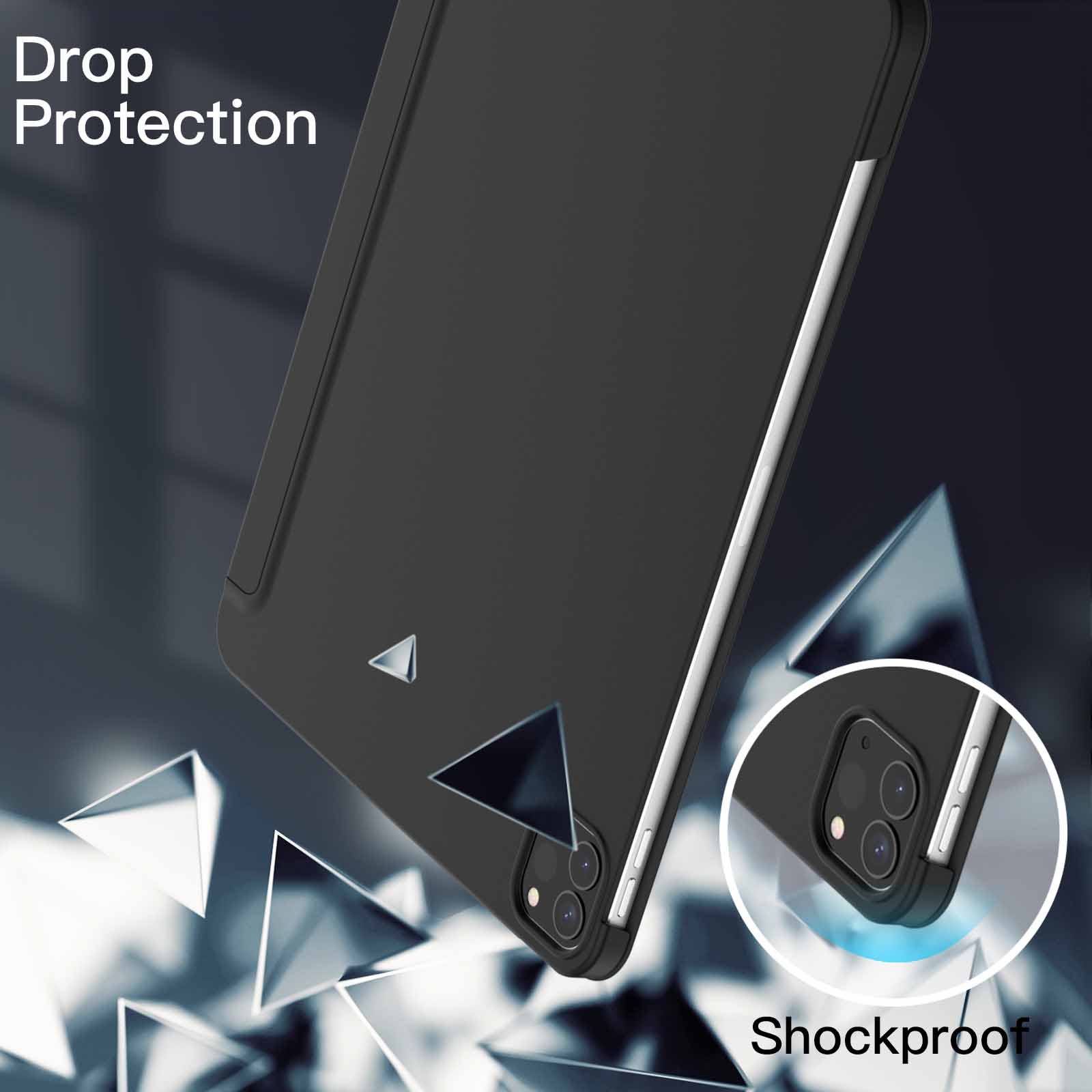 I am a repeat buyer of the Jet Tech cases for the iPad Pro. I found that most of the cases offered on have the transparent plastic backing that would be quite slippery to hold. This was one of the few I found for the iPad Pro 11 that has a very light coating on the back that helps it to be more tactile and does not have a protruding area to hold a pencil. which I do not have. The case fits well with the appropriate cutouts and holds the iPad snugly. The cover works properly with the wake/sleep function upon opening/closing. The edge protrusions around the corners and the camera on the back seem adequate to protect the edges for routine use when placed on tables. etc. but probably aren’t heavy-duty enough to protect in a significant fall. My only complaint about this case is that the front cover hangs over the edge by about 1/8 to 3/16 inches. While it helps to have the overhang to grab when opening and closing. the edge is stiff so it’s not very comfortable to hold when the cover is opened or closed. I would prefer a case that came just to the edge of the iPad so we’re holding the edge of the device. not having the edge of the cover poke into the hand. Plus. I don’t think it’s quite as rubberized on the back as the previous model I had purchased for the iPad Pro 10.5 inch. so it’s still a little bit slippery. However. these are minor issues and I would probably purchase this again.