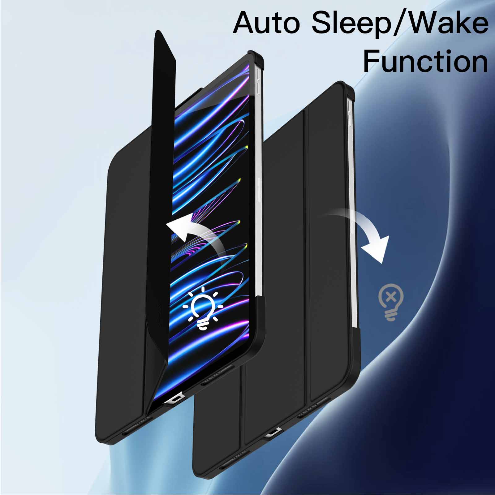 [Auto-Wake/Sleep] Magnetic smart cover supports automatic sleep/wake function. Precise cutouts for easy access to all functions and features