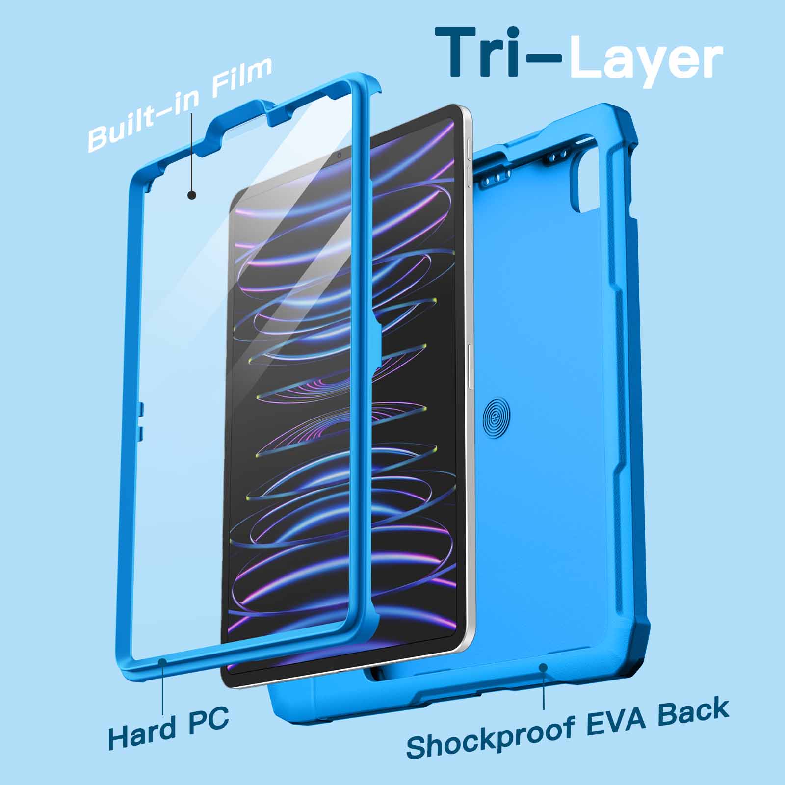 [Full-Body Protection] Built with a durable and detachable PC front cover with built-in PET screen protector, and a shockproof EVA back case. Highly protect your iPad against accidental scratches, drops and bumps