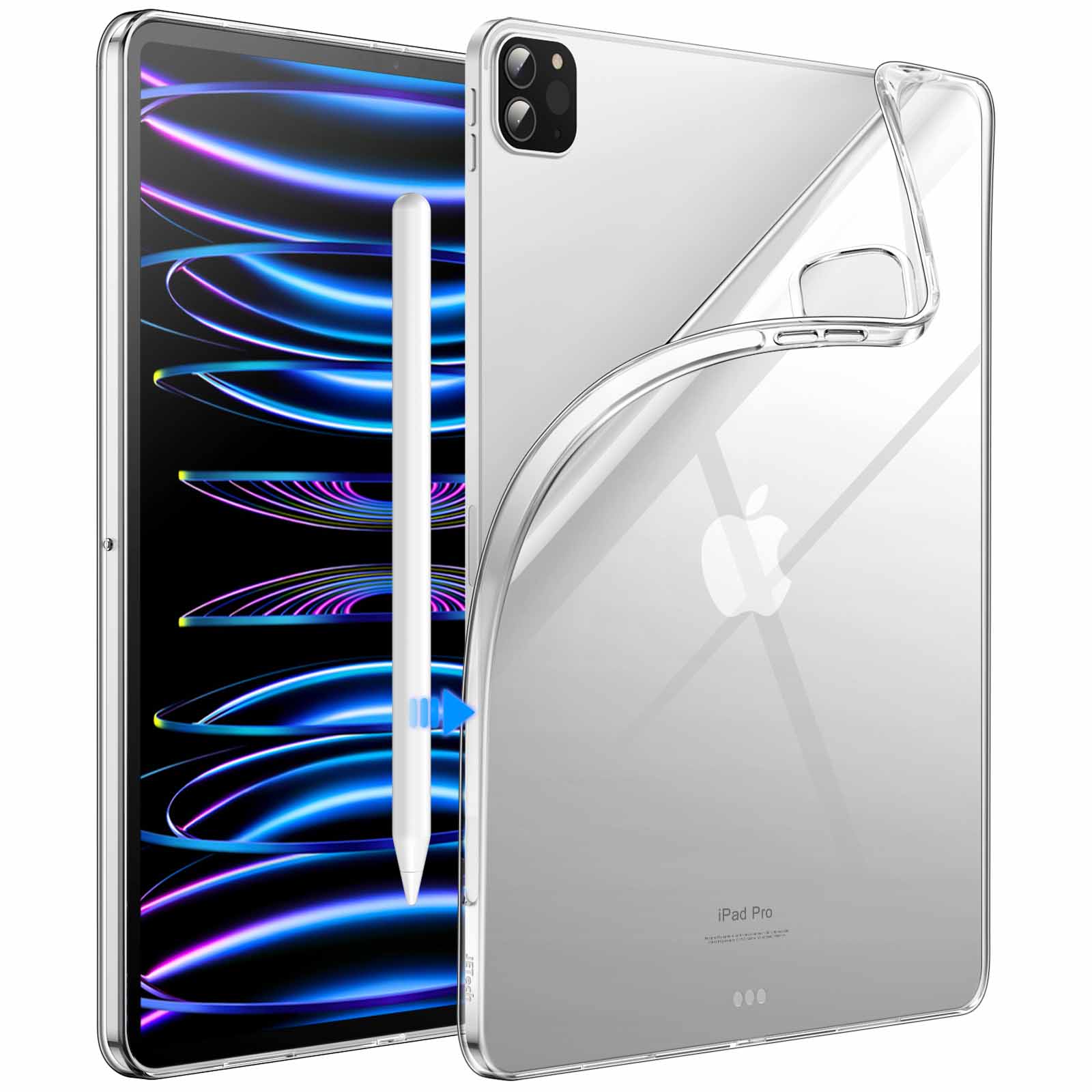 JETech Case for iPad Pro 11-Inch 2022/2021/2020 Model (4th/3rd/2nd Generation), Soft TPU Transparent Slim Shockproof Tablet Cover, Support Pencil 2nd Charging – Clear