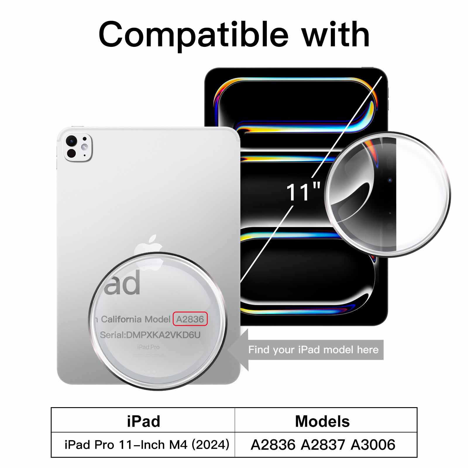 [Compatibility] Exclusively for iPad Pro 11-inch M5/M4 (2025/2024). Fit iPad Model Numbers: A3357 / A3358 / A3359 / A2836 / A2837 / A3006. Please carefully check back bottom of your device to find the model number