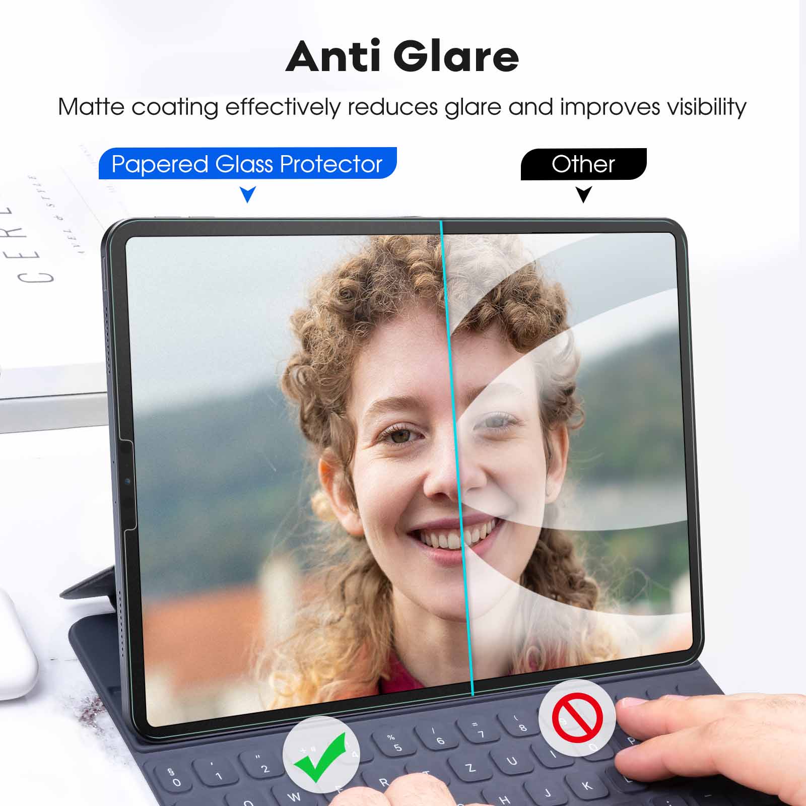 [Anti-Glare & Anti-Fingerprint] The papered characteristic reduces reflections and is anti-glare. It is not dazzling when reading in strong sunlight, outdoors or in light. Effectively keep your screen free from fingerprints and stain