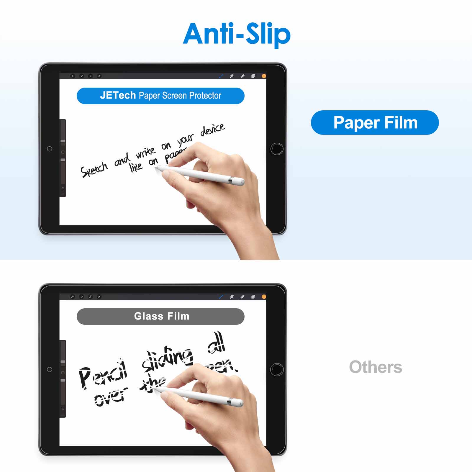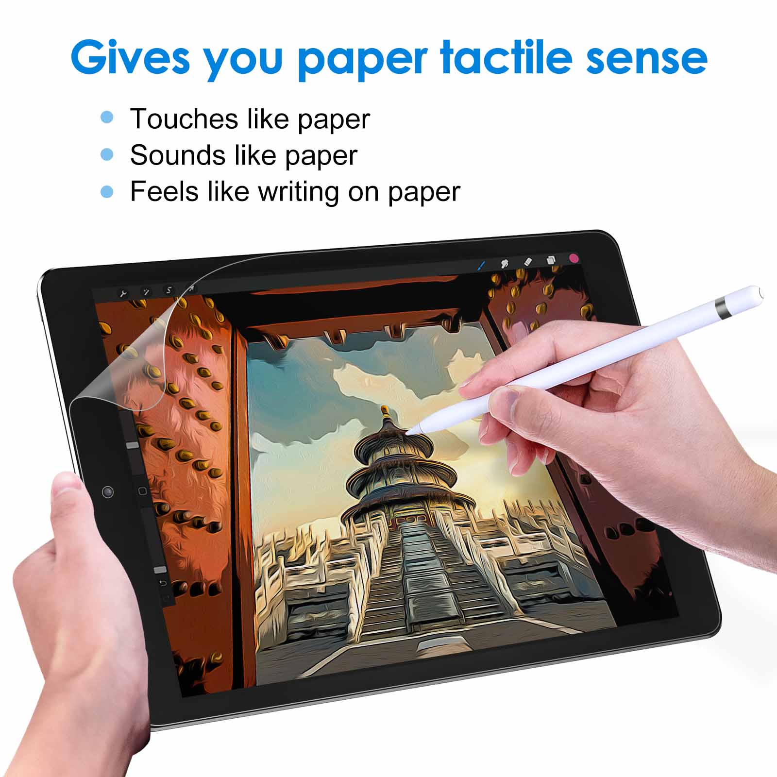 [Paper Writing] Smooth & non-slip high quality matte PET film. The Sounds, friction, and touch make you feel writing on paper. Improves work efficiency and preserves original sensitivity of your screen. Mainly used for drawing, writing and sketching