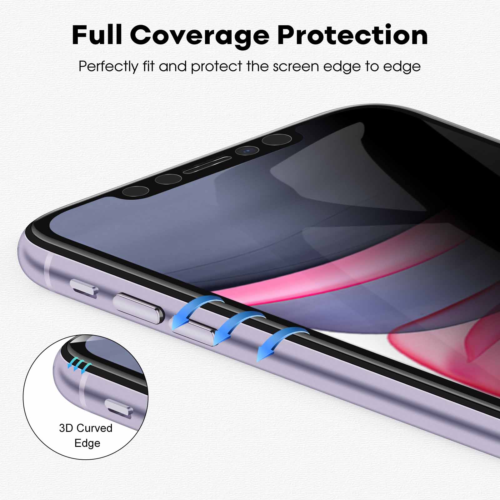 [4 Way Privacy Protection] Fit for iPhone 11/iPhone XR 6.1-inch. Perfectly keep your privacy from peeping no matter from left or right, up or down viewing angles. The screen is only visible to persons directly in front of the screen