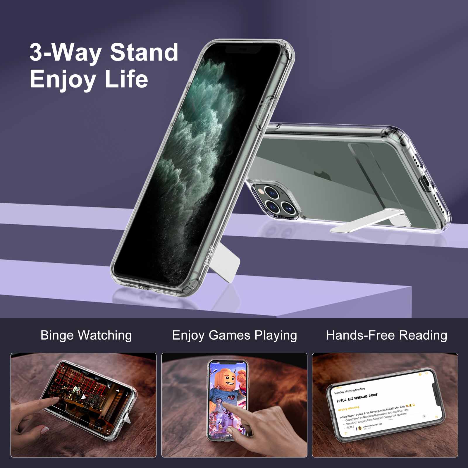 [Built-in Stand] Designed for iPhone 11 Pro 5.8-inch. The metal stand stays smooth and flat to the cover back. Support wireless charging