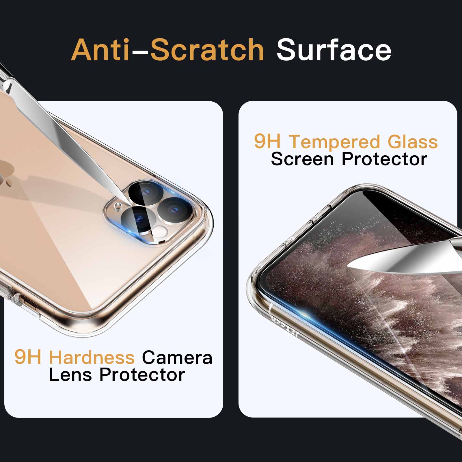 • [5-in-1 Full Protection] Exclusively fit iPhone 11 Pro Max 6.5-inch. This bumper case with 2-pack tempered glass screen protectors and 2-pack camera lens protectors provides all-around protection for your phone