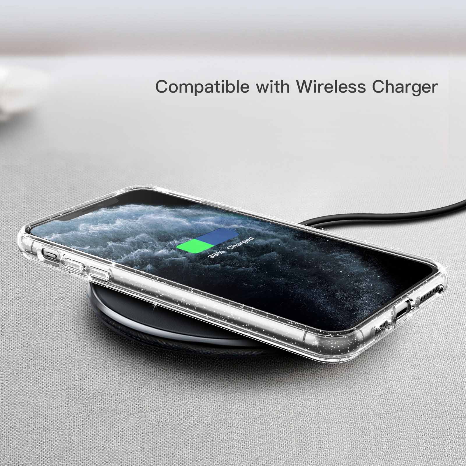 [Transparent Glitter Back] The transparent glitter back cover shows off the beautiful design and the logo of your phone. Slim profile and anti-slip design ensure a comfortable and secure grip
