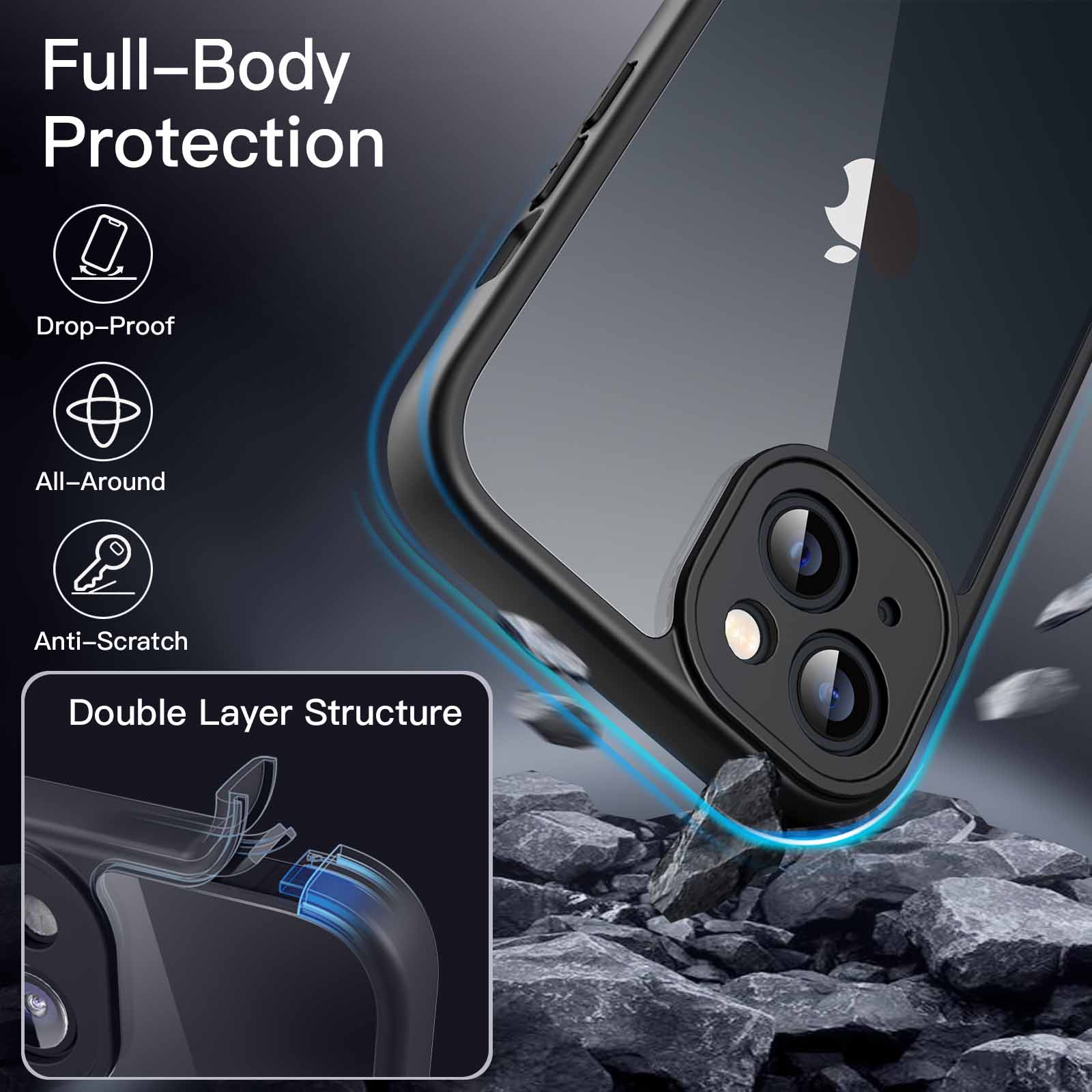 [Full Protection] Offer a front cover that protects the screen, besides, there is a protective case with soft TPU bumper and hard PC back. The two parts tightly shape a full body protection for your phone against shocks and bumps