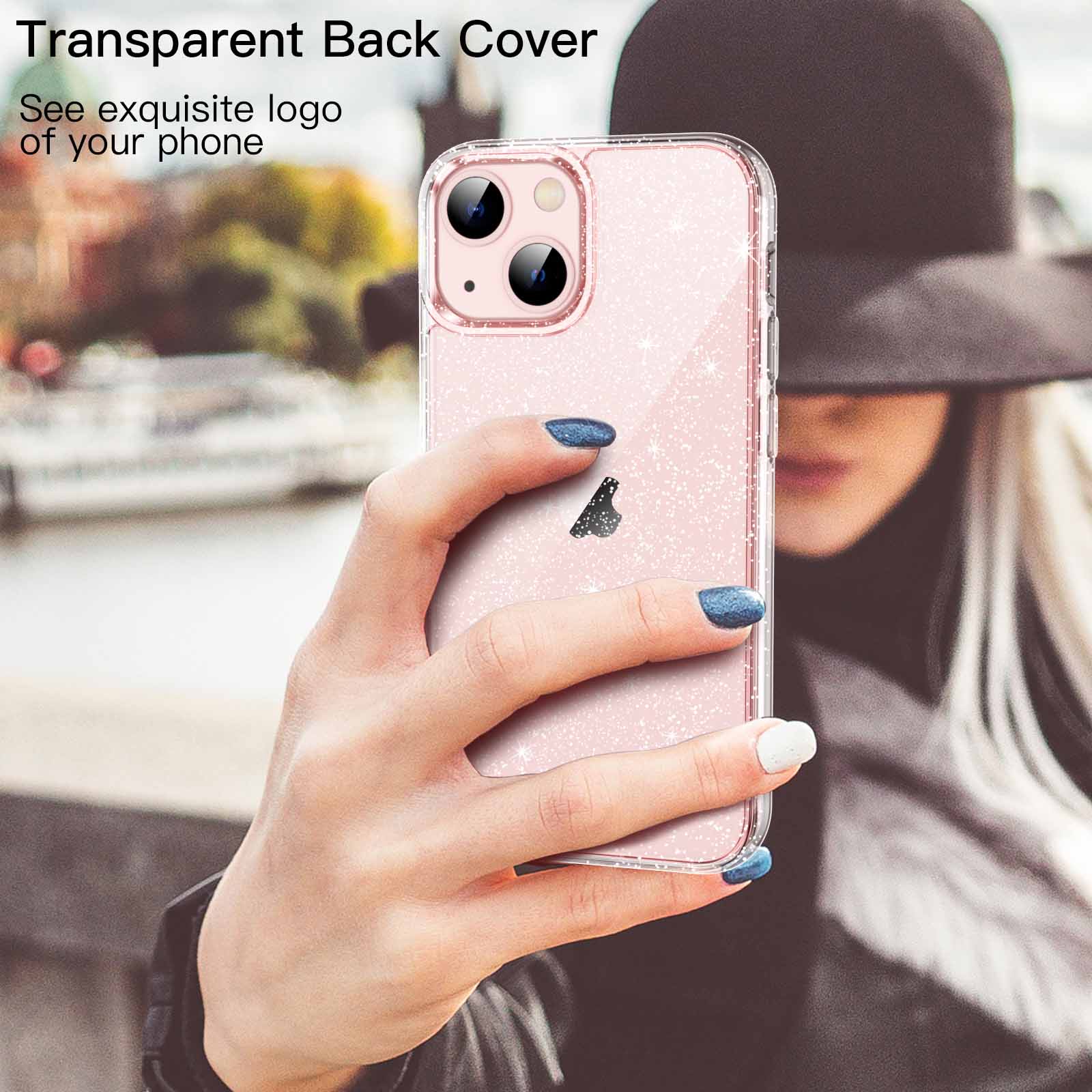 [Transparent Glitter Back] The transparent glitter back cover shows off the beautiful design and the logo of your phone. Slim profile and anti-slip design ensure a comfortable and secure grip