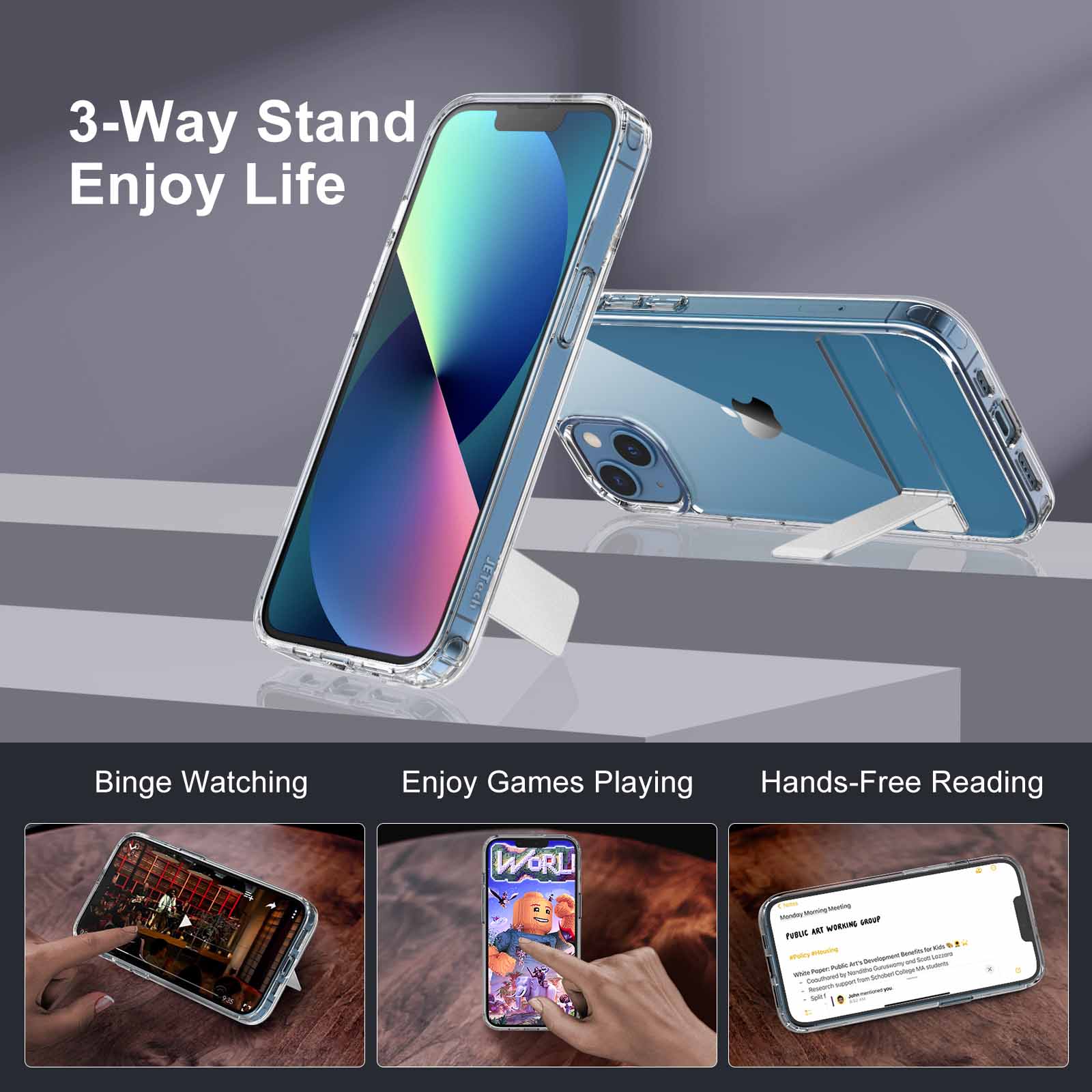 [Built-in Stand] Designed for iPhone 13 mini, 5.4-Inch. The metal stand stays smooth and flat to the cover back. Support wireless charging