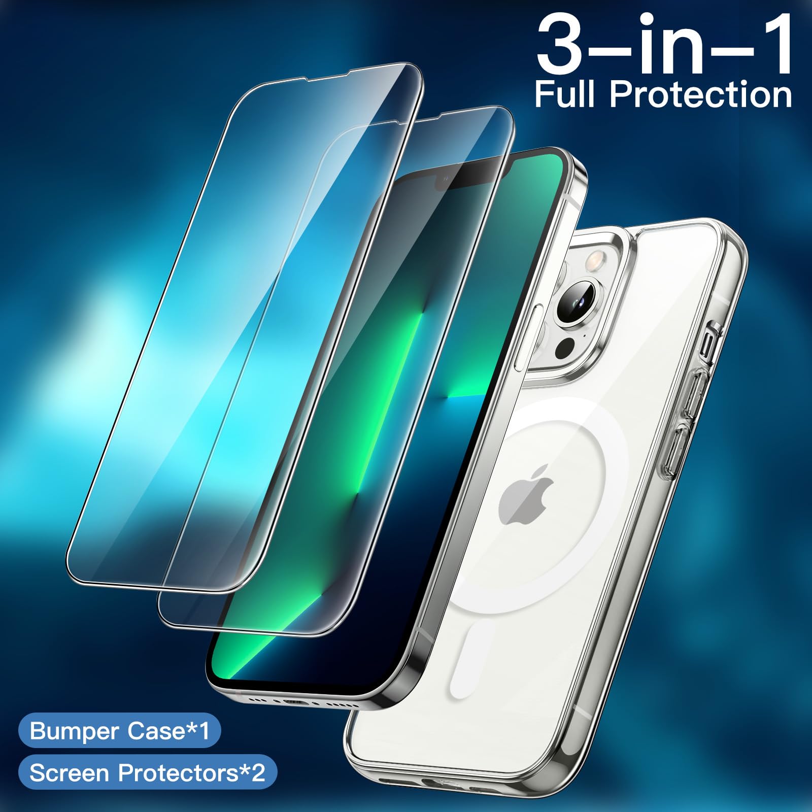 • [3-in-1 High Protection] Exclusively designed for iPhone 13 Pro 6.1-inch. This magnetic case with 2 pack tempered glass screen protectors provides all-around protection for your phone