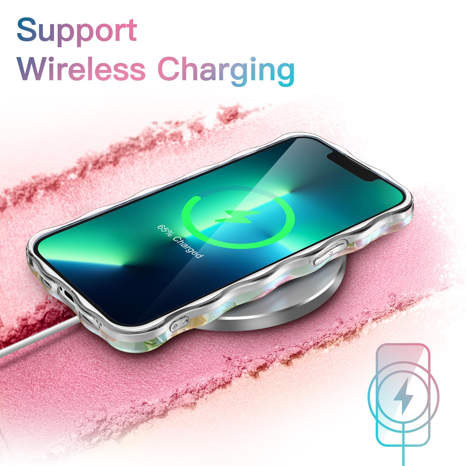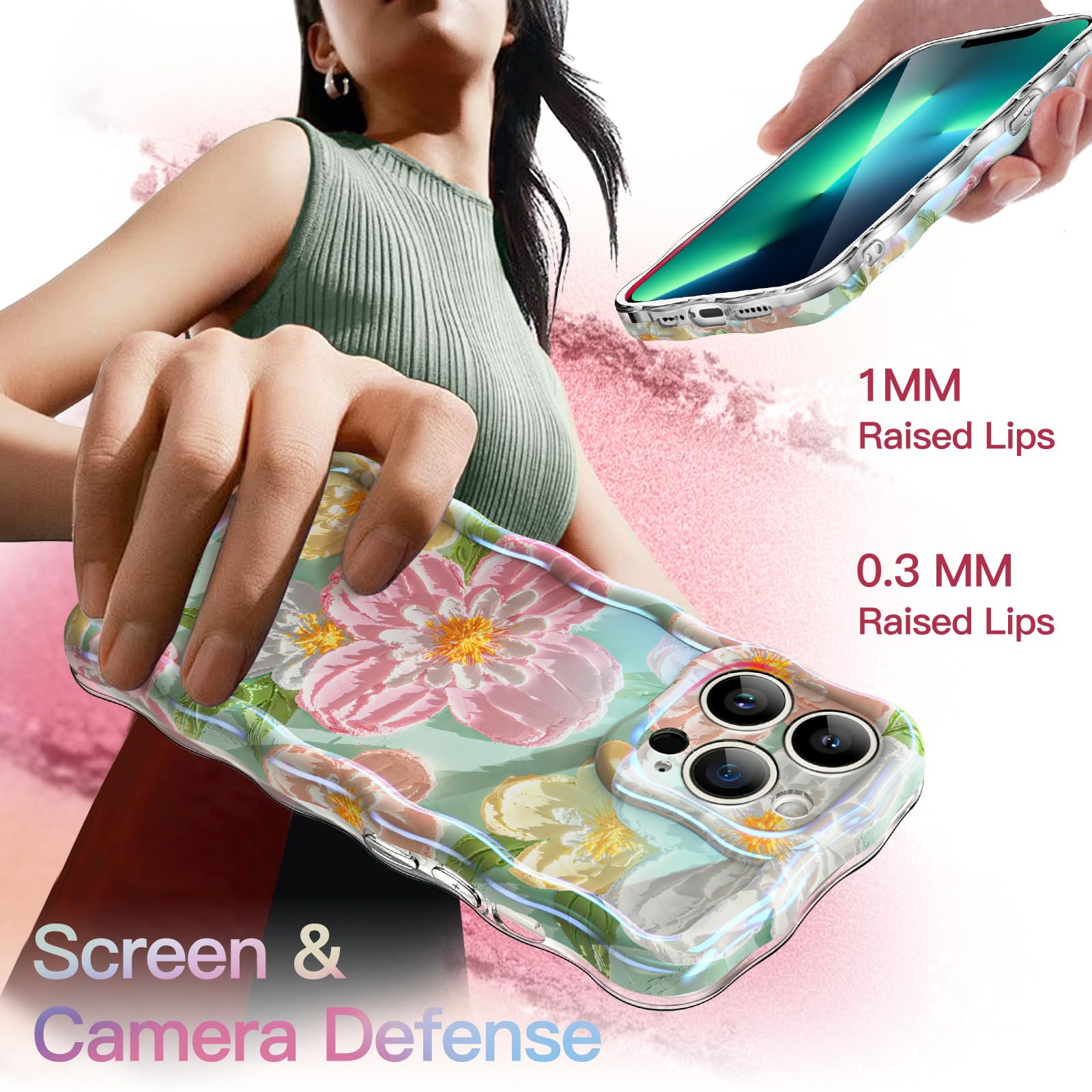 JETech Cute Case for iPhone 13 Pro Max 6.7-Inch, Colorful Retro Oil Painting Floral Design Curly Wave Frame, Stylish Flower TPU Soft Protective Phone Cover for Women and Girl