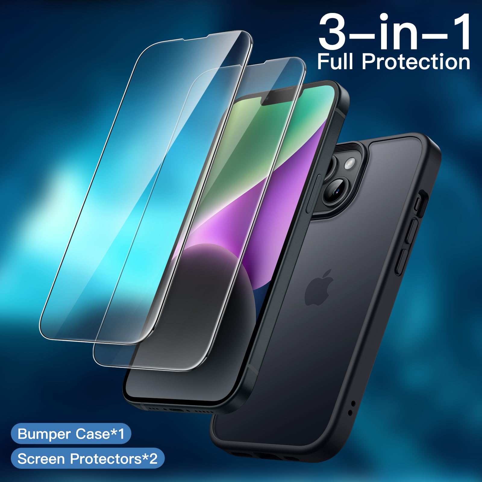 • [Dual Protection] Tailor-made for iPhone 14 6.1-inch. You will receive a shockproof matte case and 2 pack tempered glass screen protectors, bringing comprehensive protection to your device