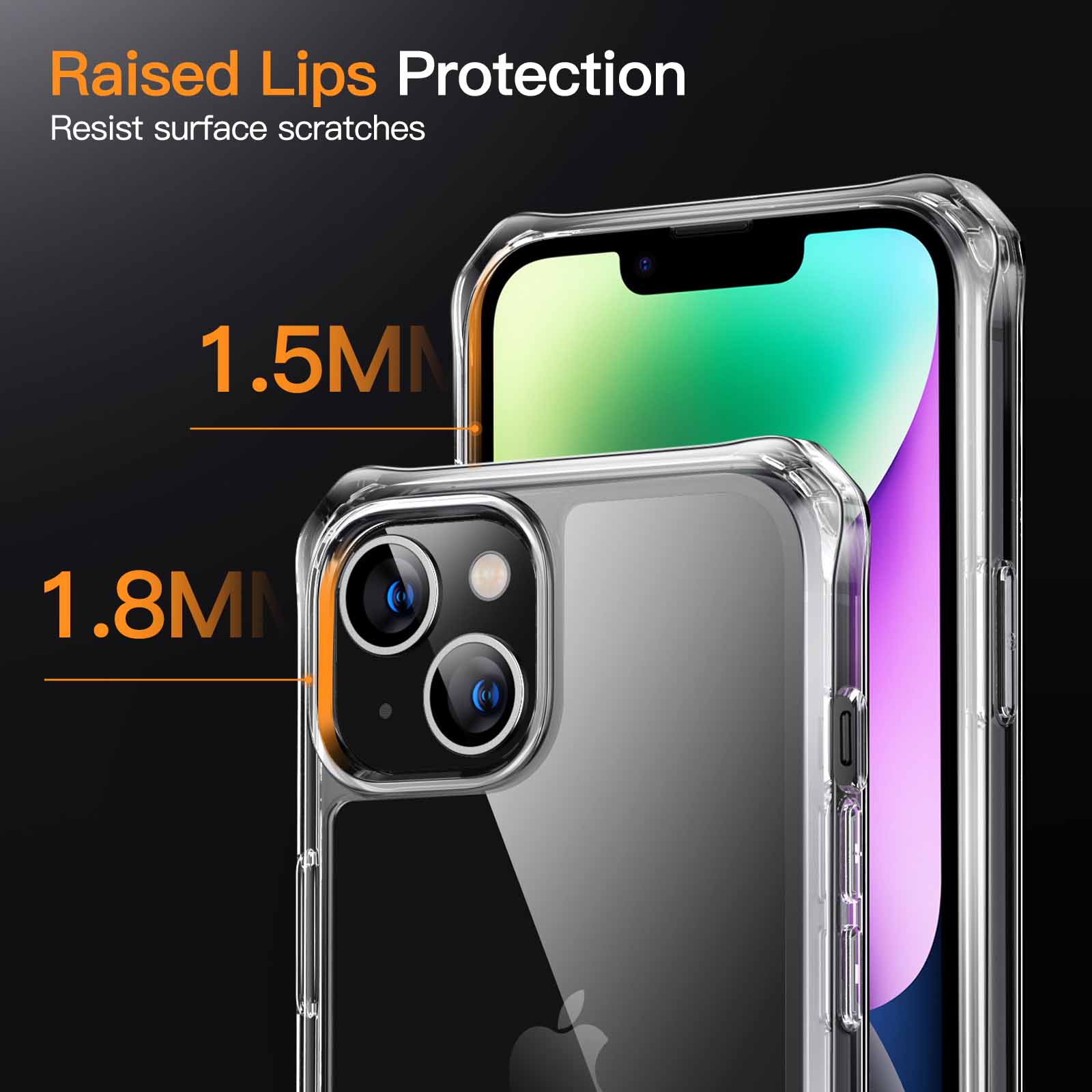[Thoughtful Details] The specially designed cushions in four corners are shock-absorbent. In addition, the 1.8 mm raised camera lip and 1.5 mm raised screen lip provide more protection to your device