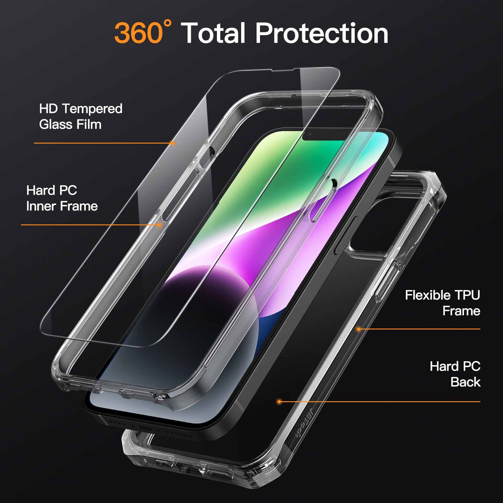 [360 Full Protection] Hard PC back cover, separated PC frame and tempered glass screen protector offer all-around protection. Incredibly defend your phone against heavy drops, bumps, shocks and scratches