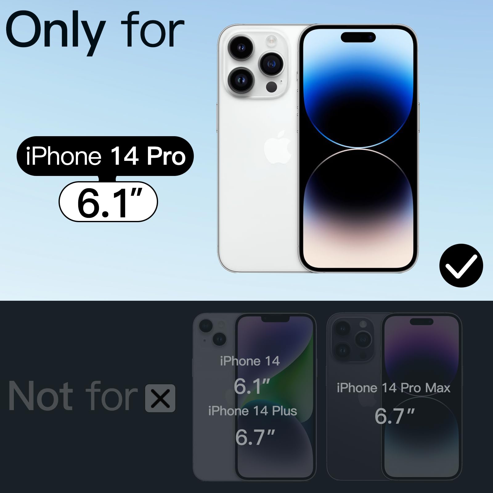 [Perfectly Fit] Designed for iPhone 14 Pro 6.1 inch. NOTE: Not for iPhone 14 / 14 Plus / 14 Pro Max. The perfectly aligned cutouts allow full access to the camera, speaker, buttons and other ports