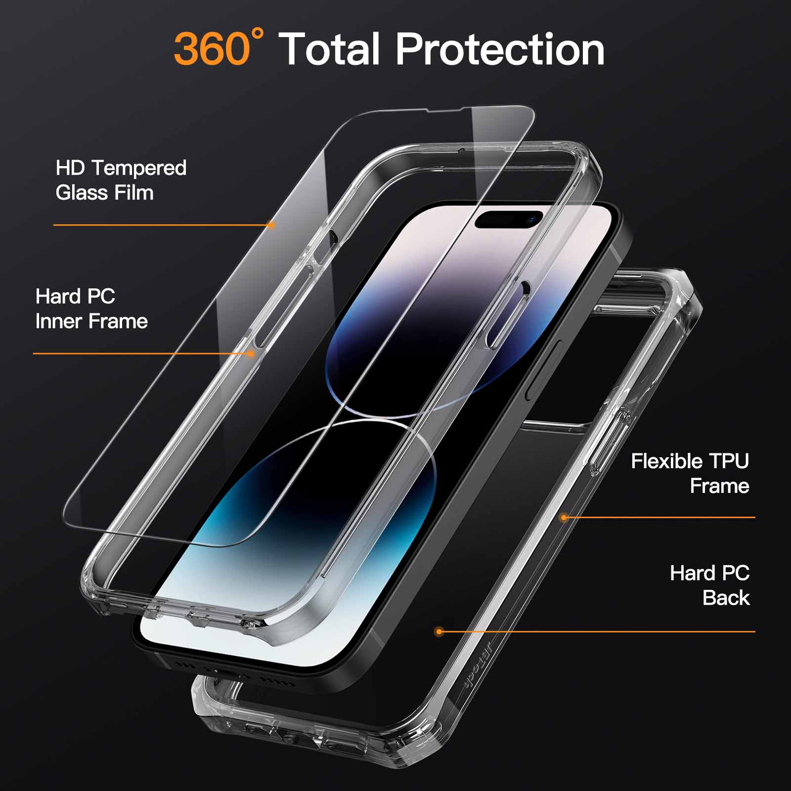7 reviews for JETech Case for iPhone 14 Pro 6.1-Inch with 2-Pack Tempered Glass Screen Protector, 360 Full Body Shockproof Bumper Phone Cover Protective Clear Back