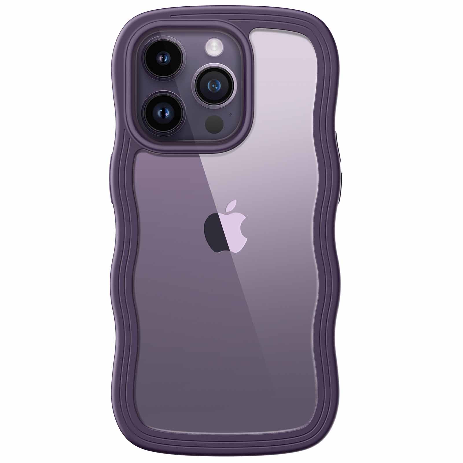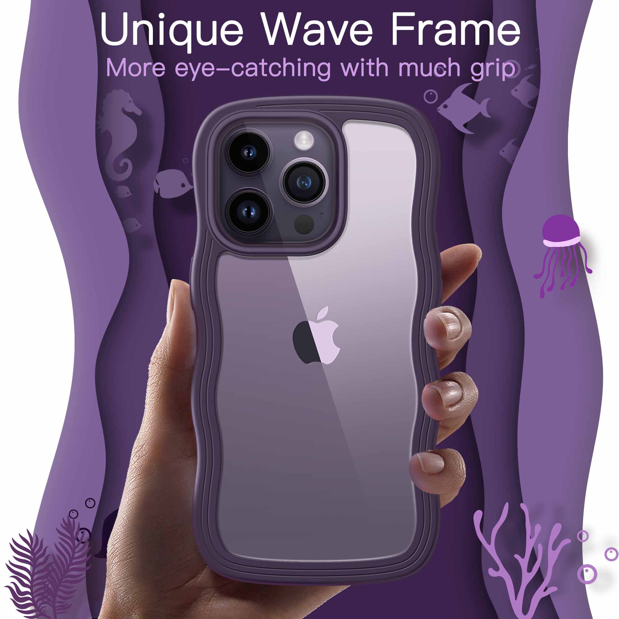 JETech Cute Case for iPhone 14 Pro Max 6.7-Inch, Wave Frame Curly Shape Shockproof Phone Cover for Women and Girls, Clear Hard PC Back