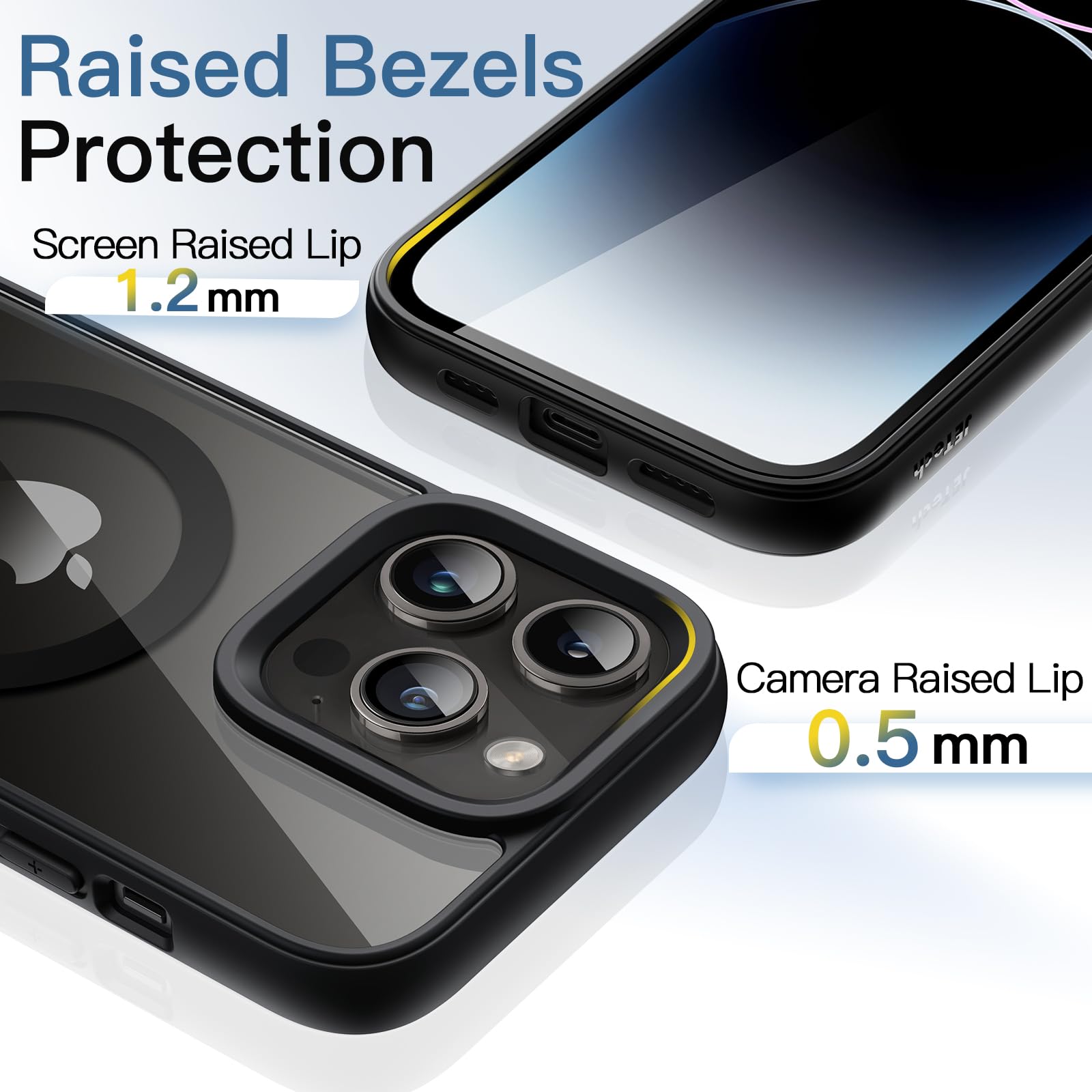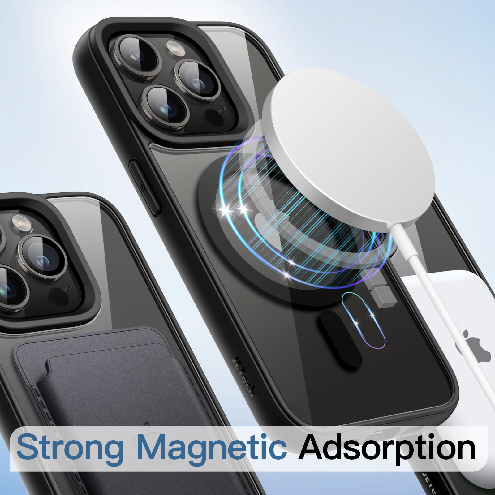 The JETech Magnetic Case for iPhone 14 Pro Max is designed to offer premium protection while maintaining the sleek look of your device. This case combines functionality and style. making it an excellent choice for iPhone users..Pros:.MagSafe Compatibility: Seamlessly works with MagSafe accessories. ensuring hassle-free charging and accessory attachment..Shockproof Design: The solid color matte TPU frame provides robust protection against drops and impacts..Clear Back: The anti-scratch clear back showcases the phone’s design while keeping it safe from scratches and scuffs..Elegant Look: The silver finish adds a touch of elegance. complementing the iPhone’s aesthetics..Precise Cutouts: Offers easy access to all buttons. ports. and the camera without removing the case..Cons:.Fingerprint Smudges: The clear back may show fingerprint smudges. requiring occasional cleaning to maintain its clarity..Slim Fit: While providing adequate protection. users seeking ultra-rugged protection might find it less suitable..In summary. the JETech Magnetic Case for iPhone 14 Pro Max strikes a perfect balance between protection and style. Its MagSafe compatibility and shockproof design make it a reliable and attractive option for safeguarding your phone.