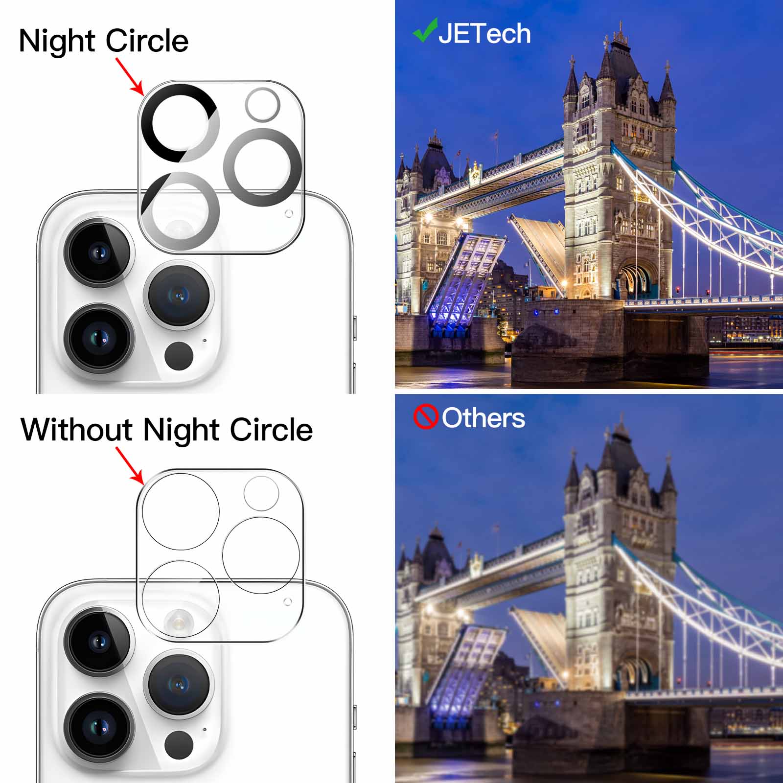 [Night Shooting Mode] The camera lens protector with upgraded built-in night circle allows you to use the flash function normally at night. High light transmittance ensures the original quality of pictures and videos