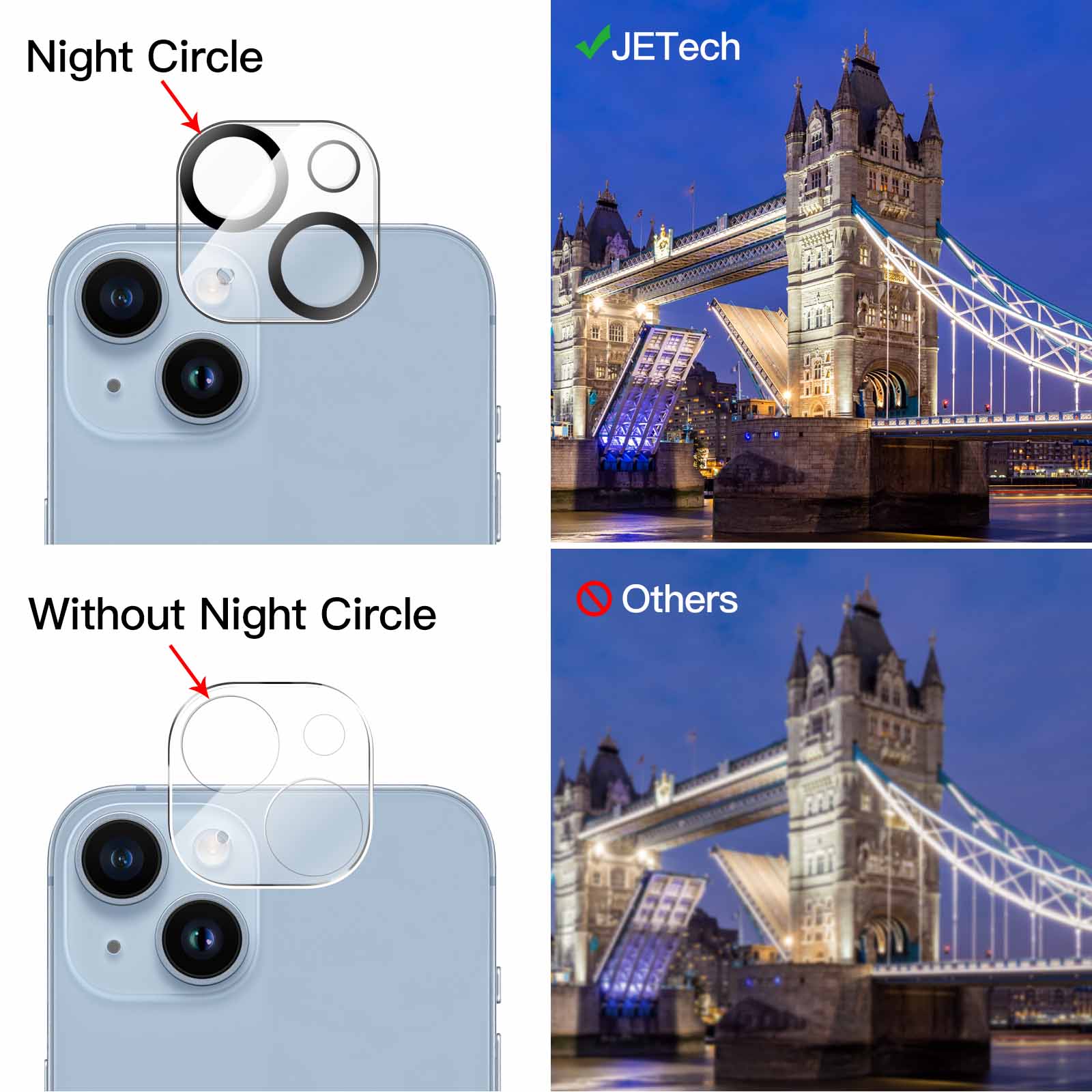 [Night Shooting Function] Built-in black circles of the camera lens protector do not affect the normal use of flash function. Enjoy your photography time at night or in the low light condition