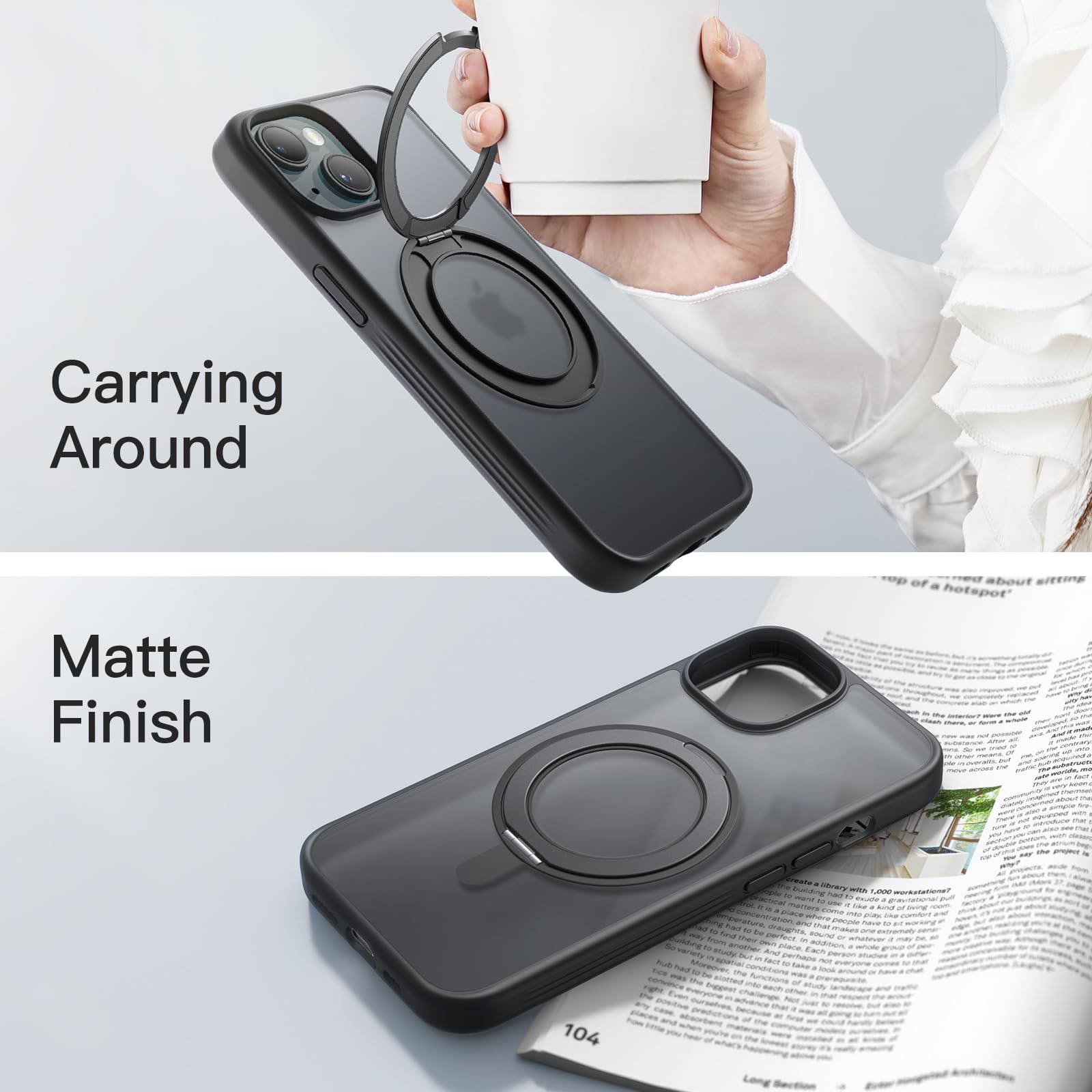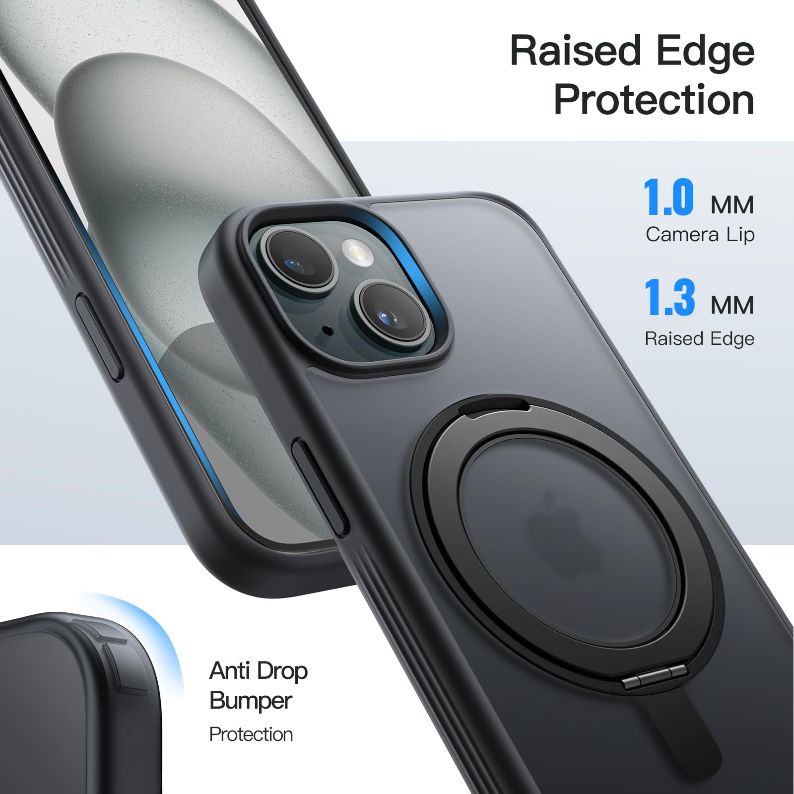 [Lasting Durability] The rotatable ring stand undergoes over 3000 open/close tests throughout the manufacturing process to provide you with quality assurance. Meanwhile, the raised edges effectively protect the screen and camera, perfectly protect your phone from daily drops and bumps
