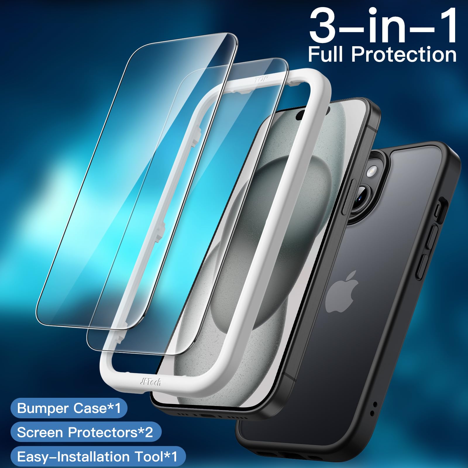 [Dual Protection] Tailor-made for iPhone 15 6.1-inch. You will receive a shockproof matte case and 2 pack screen protectors with an alignment tool, bringing comprehensive protection to your device